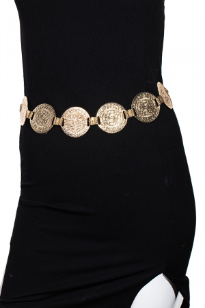 - This chain belt brings a luxurious intricate large metallic disc style. Savor the allure of detailed craftsmanship in this exquisite chain belt.