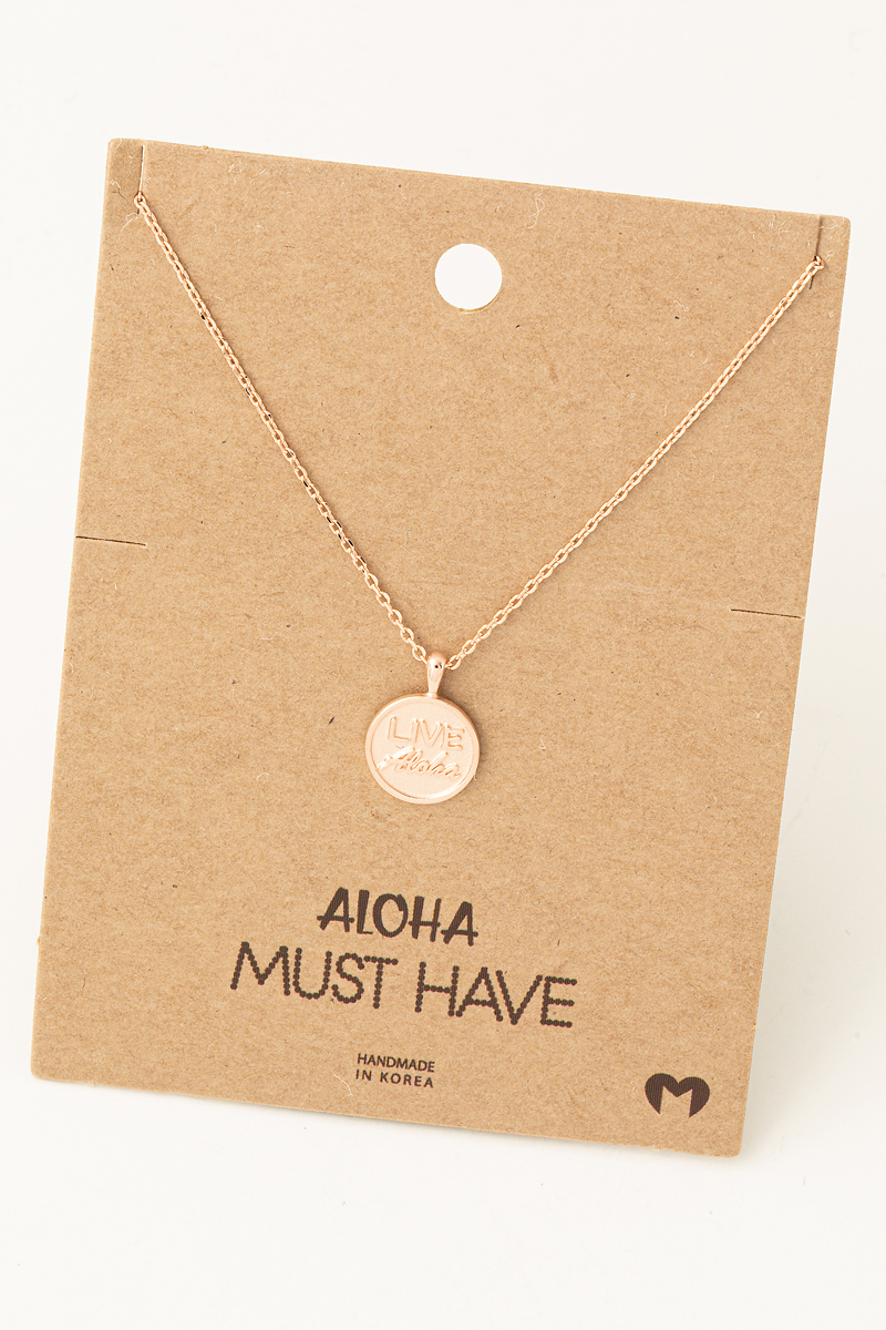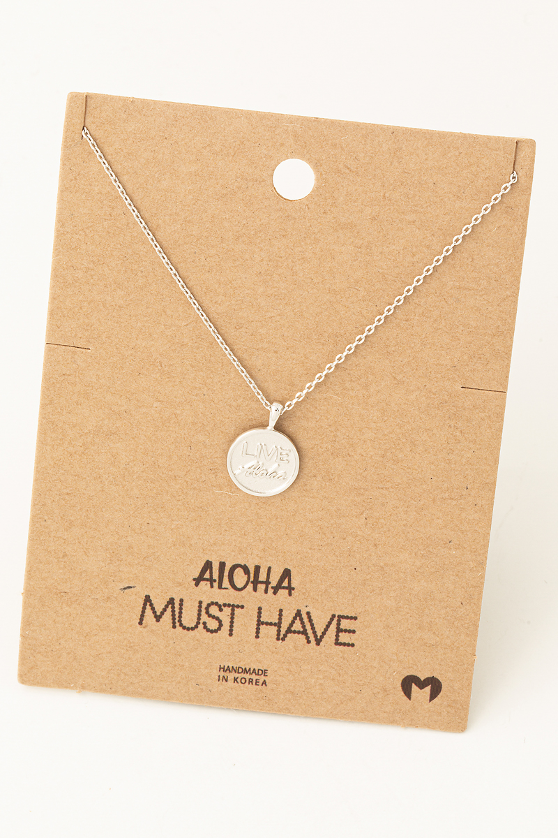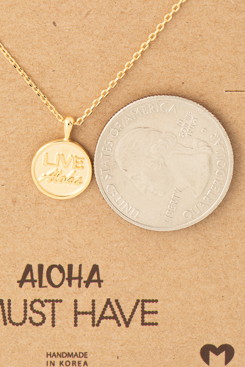 • This necklace adds a modern live aloha coin pendant style. Indulge in the artistry of accessorizing with this unique piece.