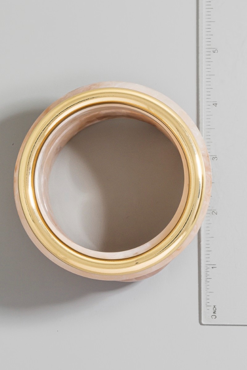 • This bangle bracelet brings a unique metallic tube and wide marble resin set style. Explore a refined sense of style with this bangle bracelet, seamlessly elevating the chic factor of your look.