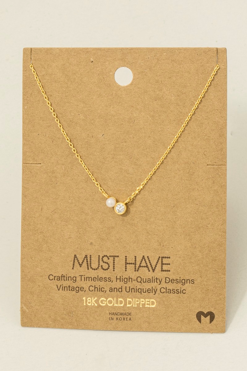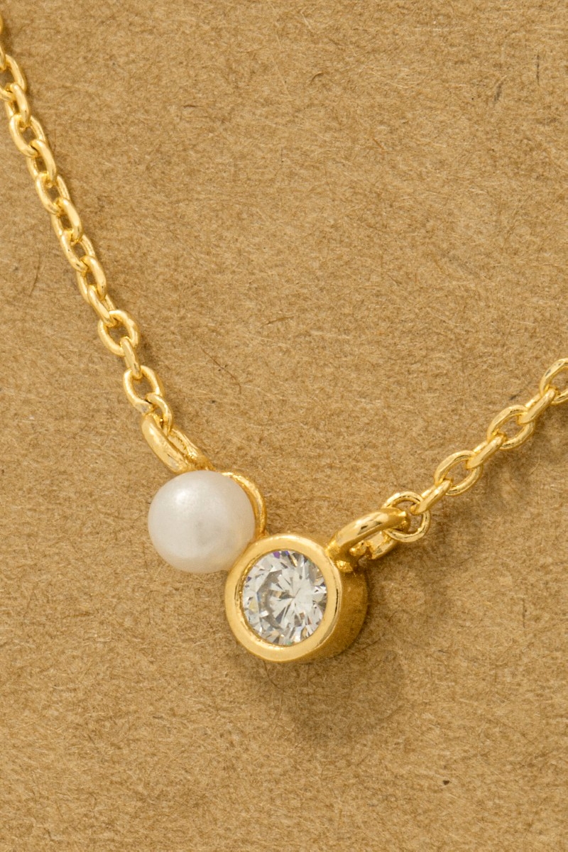 • This trending necklace displays a vibrant mini pearl and cubic zirconia stud charm necklace style. Indulge in the artistry of accessorizing with this unique piece.