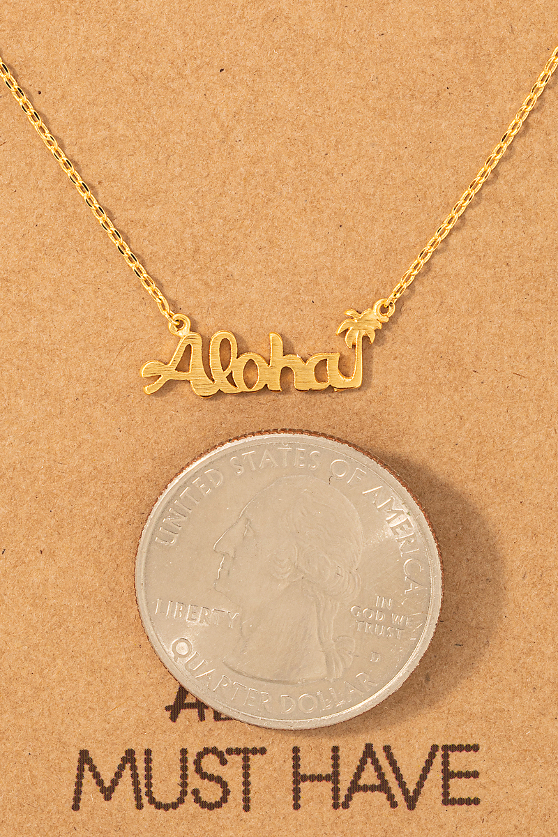 - This necklace showcases a timeless aloha palm tree pendant style. Witness the transformative power of accessories as this piece effortlessly redefines your fashion narrative.
