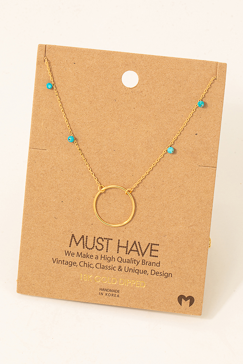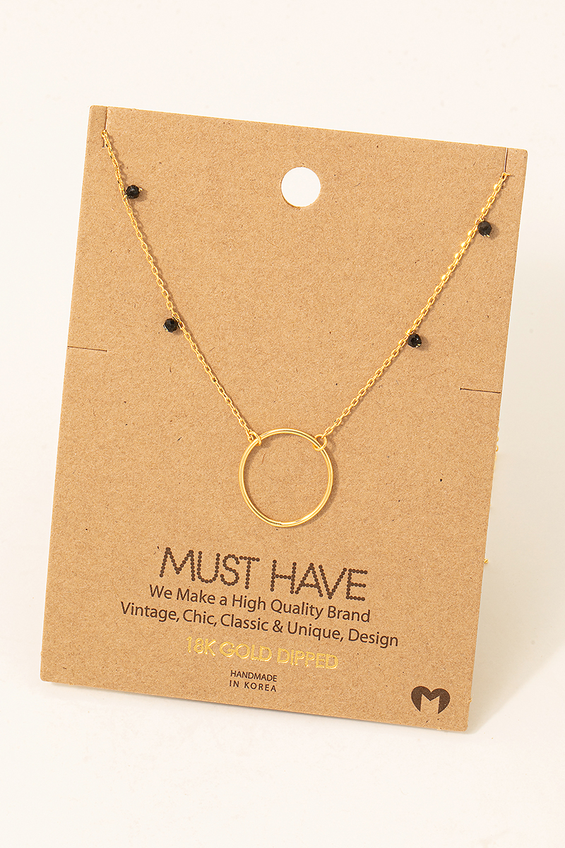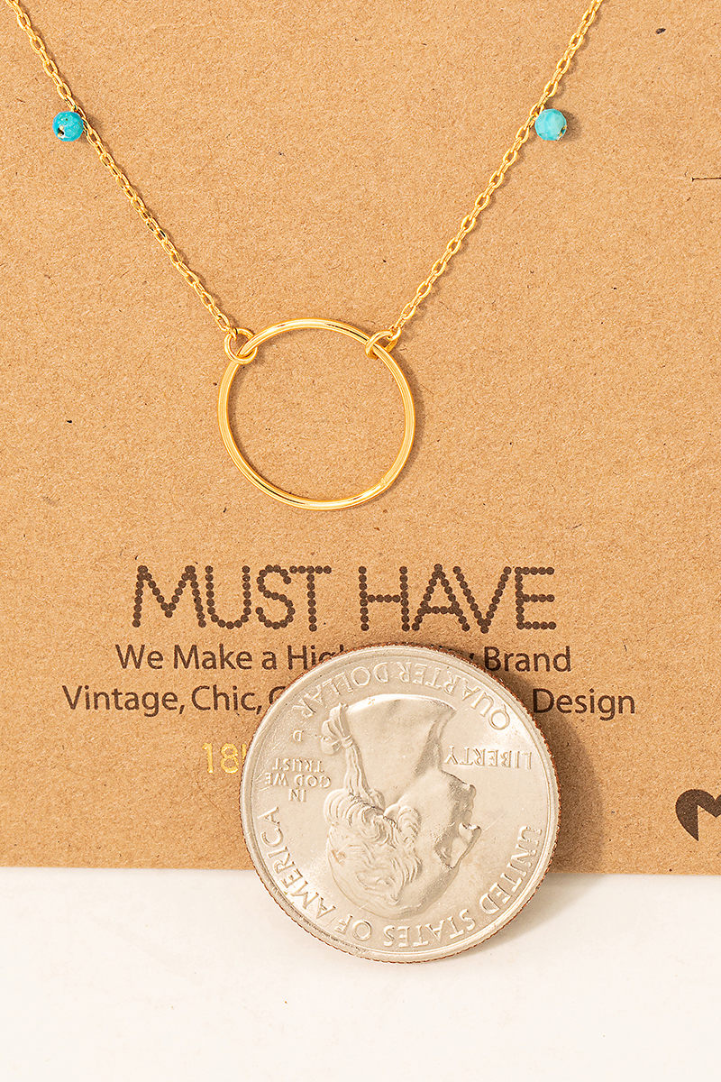 - This necklace displays a fashionable center hoop charm style. Savor the craftsmanship that goes beyond the ordinary, as this necklace effortlessly captivates attention.