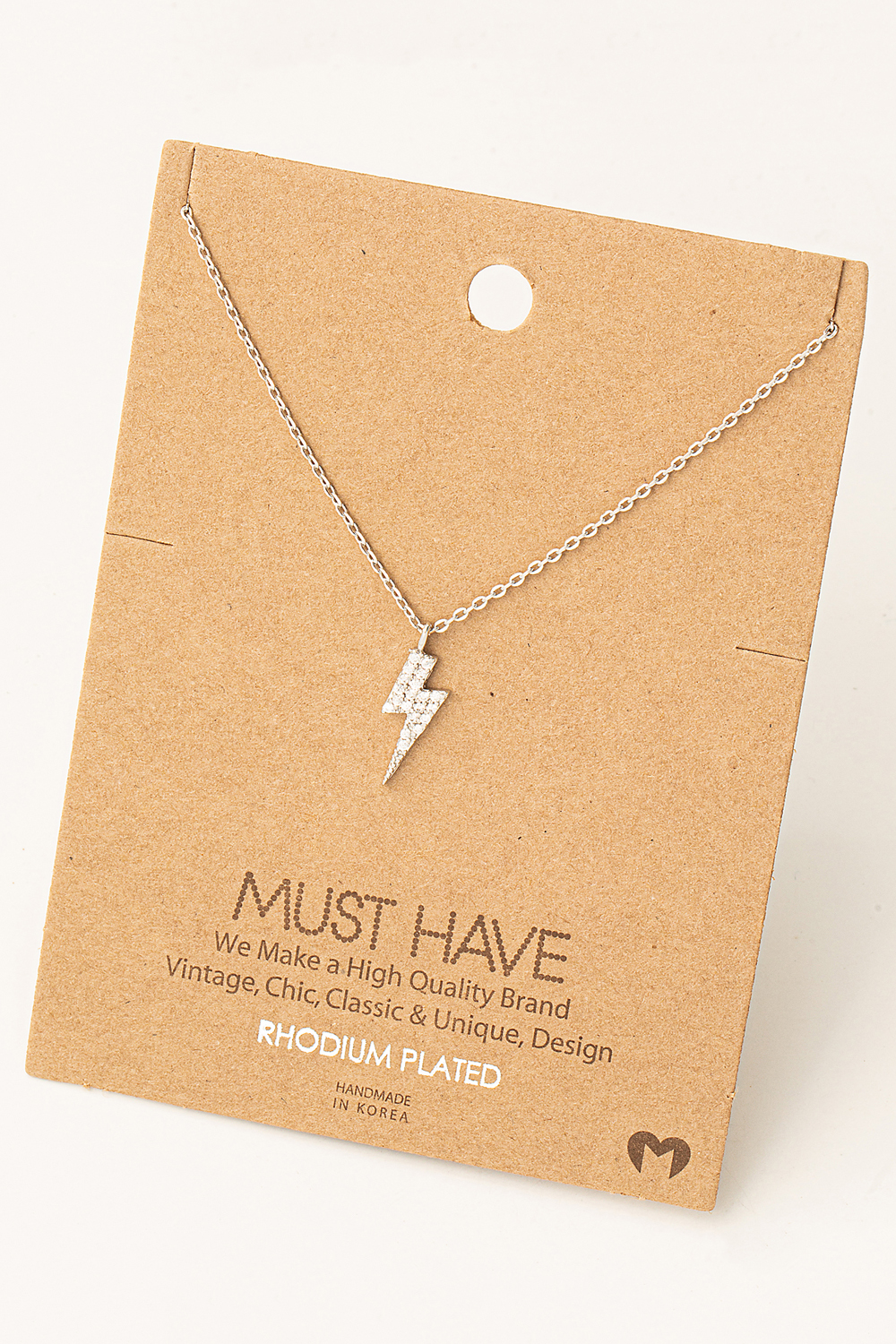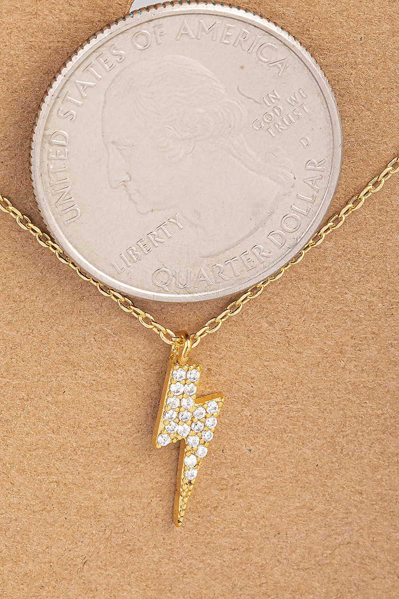 - This necklace showcases a unique mini studded lightning bolt style. Witness the transformative power of accessories as this piece effortlessly redefines your fashion narrative.