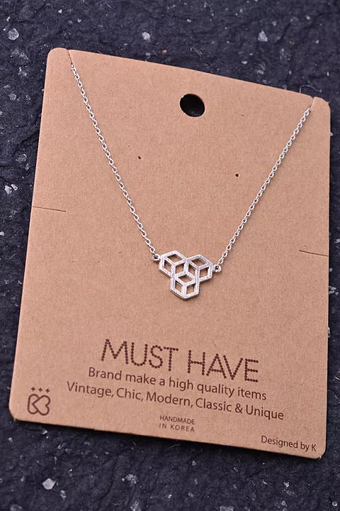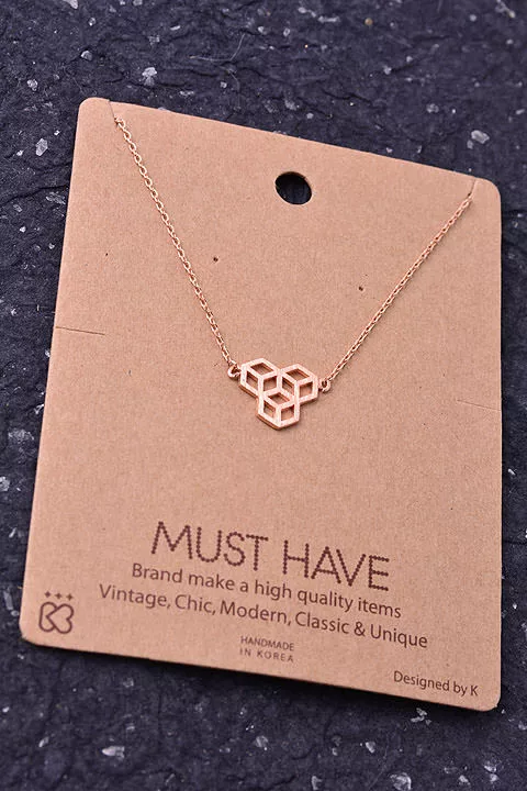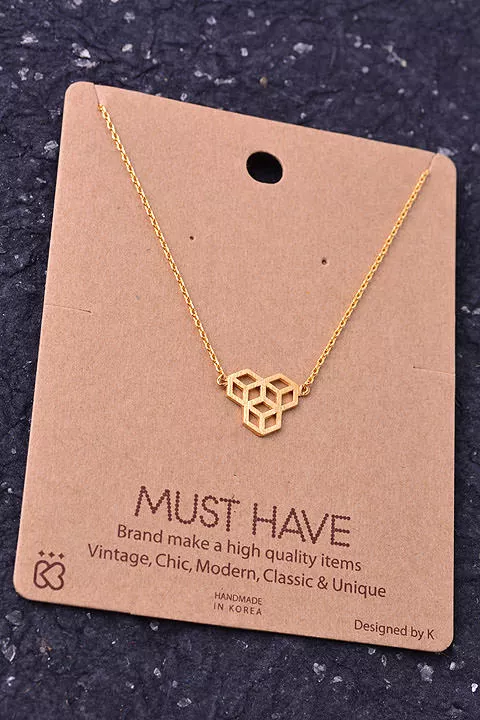 Gold Dipped Flower Print Square Pendant Necklace