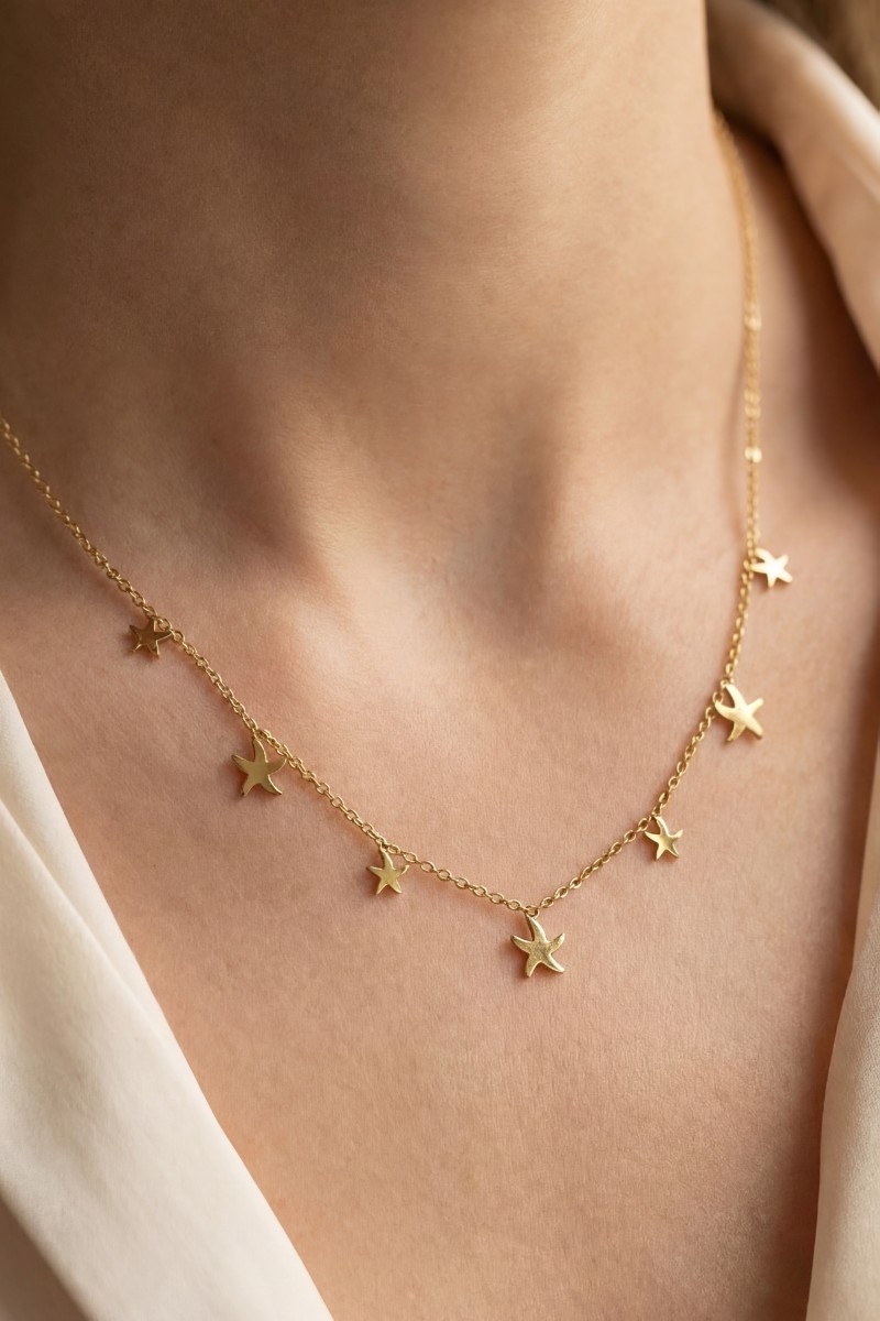 • This chain necklace adds a modern stainless steel starfish charms station necklace style. Elevate your ensemble with this chic, timeless chain necklace.