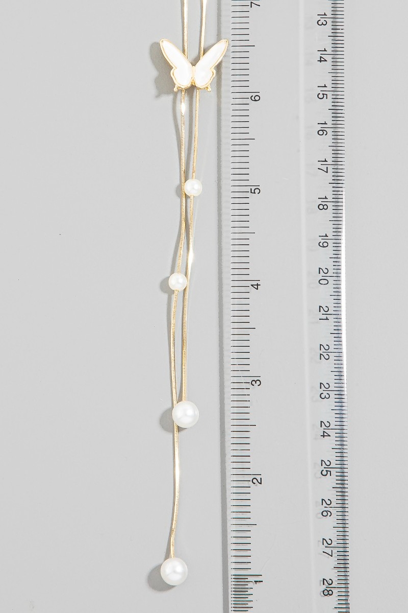 - This chain necklace brings a luxurious station pearl charms butterfly tie style. Indulge in the artistry of accessorizing with this unique piece.