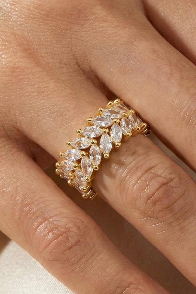 - This ring displays a vibrant cz leaves adjustable style. Indulge in the allure of exquisite craftsmanship as this ring effortlessly adds a touch of luxury to your attire.