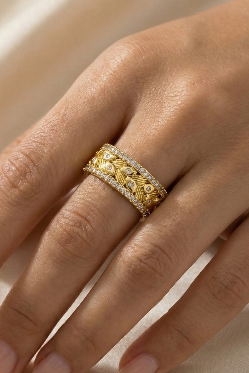 • This ring brings a stunning cz trim evil eye detail adjustable style. Experience a burst of creativity in accessorizing as this piece effortlessly sets the tone for your unique style.