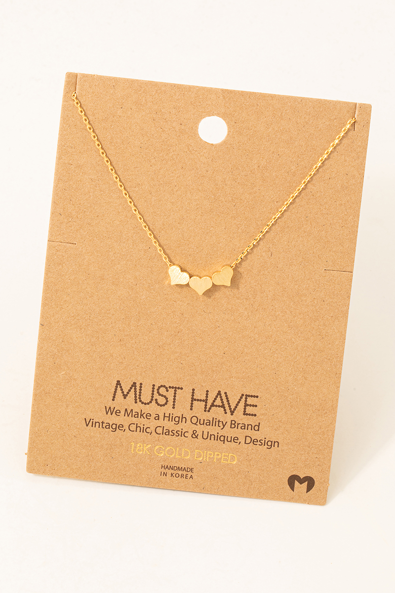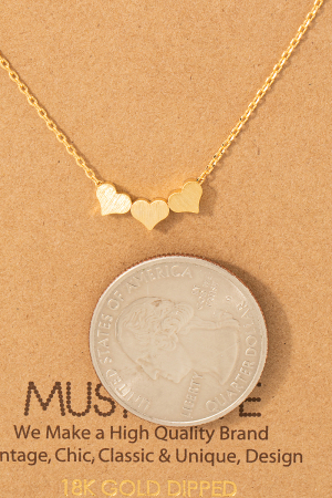 • This necklace showcases a unique three dainty hearts style. Experience a burst of creativity in accessorizing as this piece effortlessly sets the tone for your unique style.