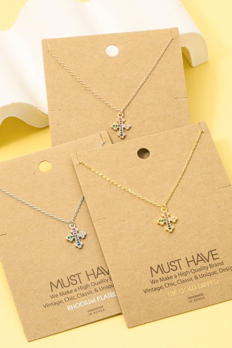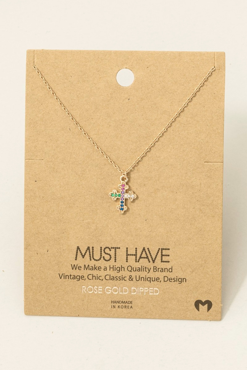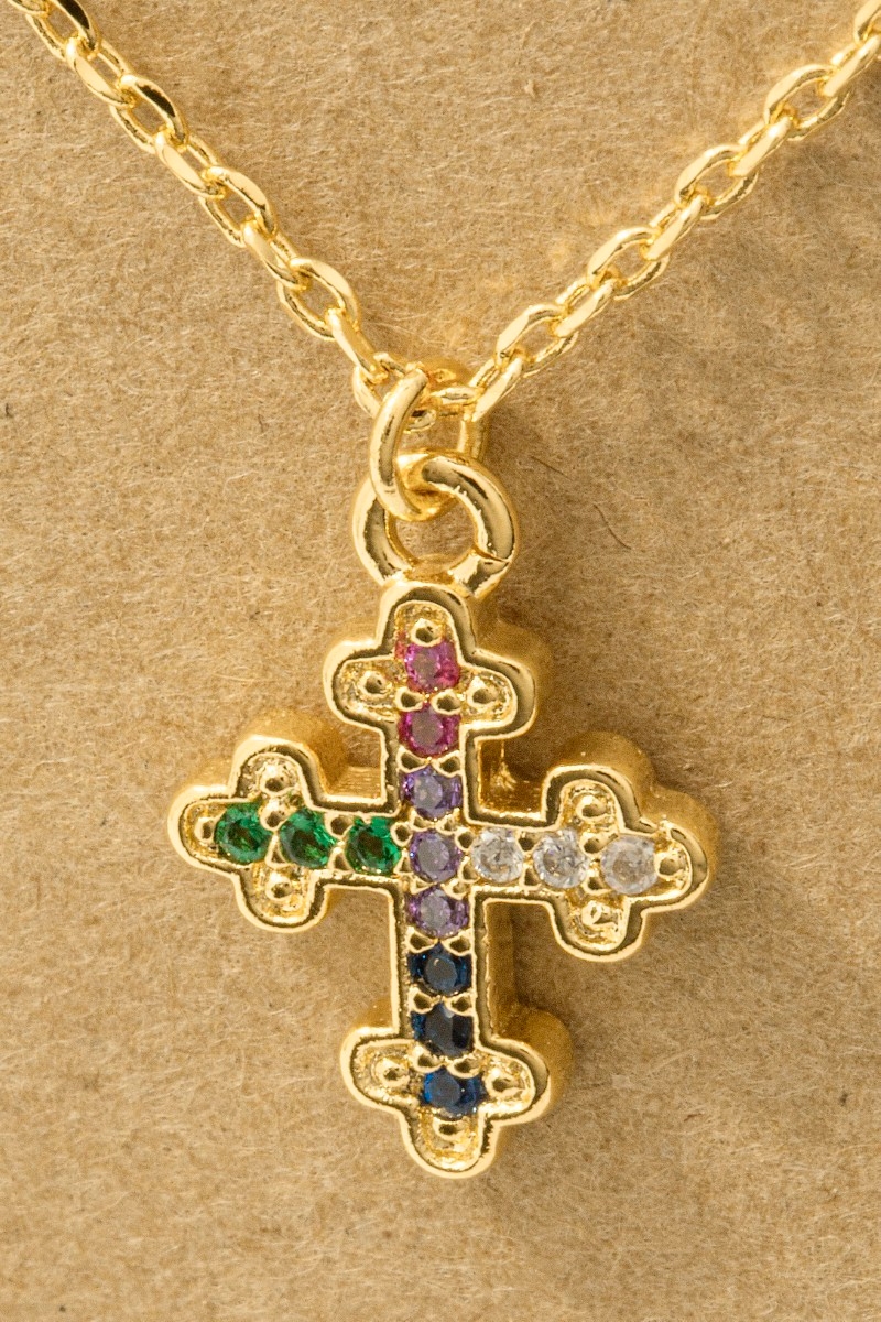 - This trending necklace introduces a stunning gold dipped cubic zirconia rainbow pave cross pendant necklace style. Discover the perfect balance of functionality and fashion.