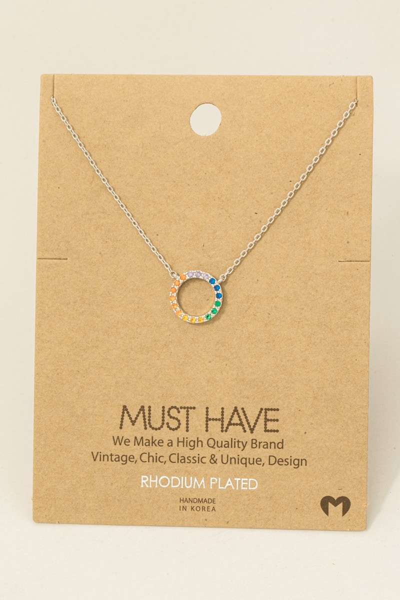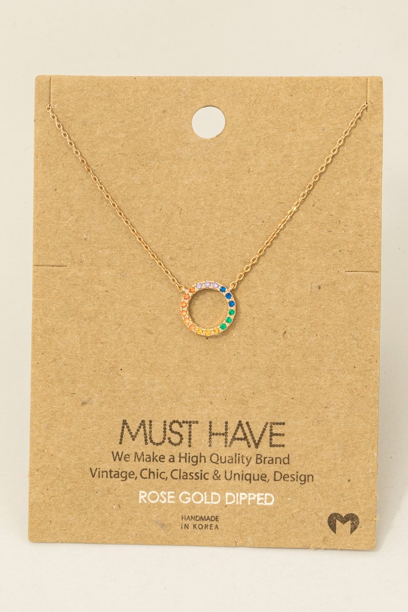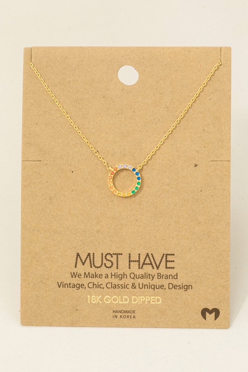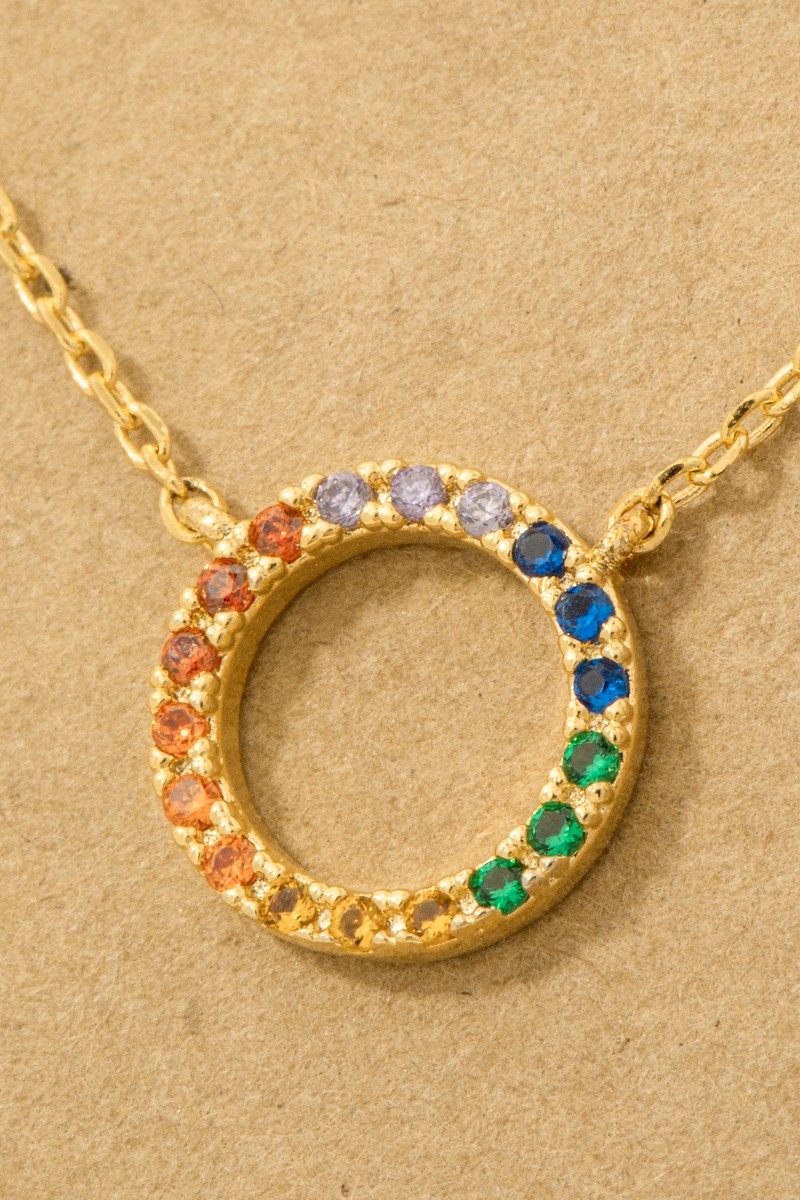 - This trending necklace brings a stunning rainbow circle pendant necklace style. Step into a world of refined taste as this trending necklace effortlessly refines the details of your outfit.