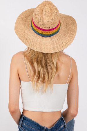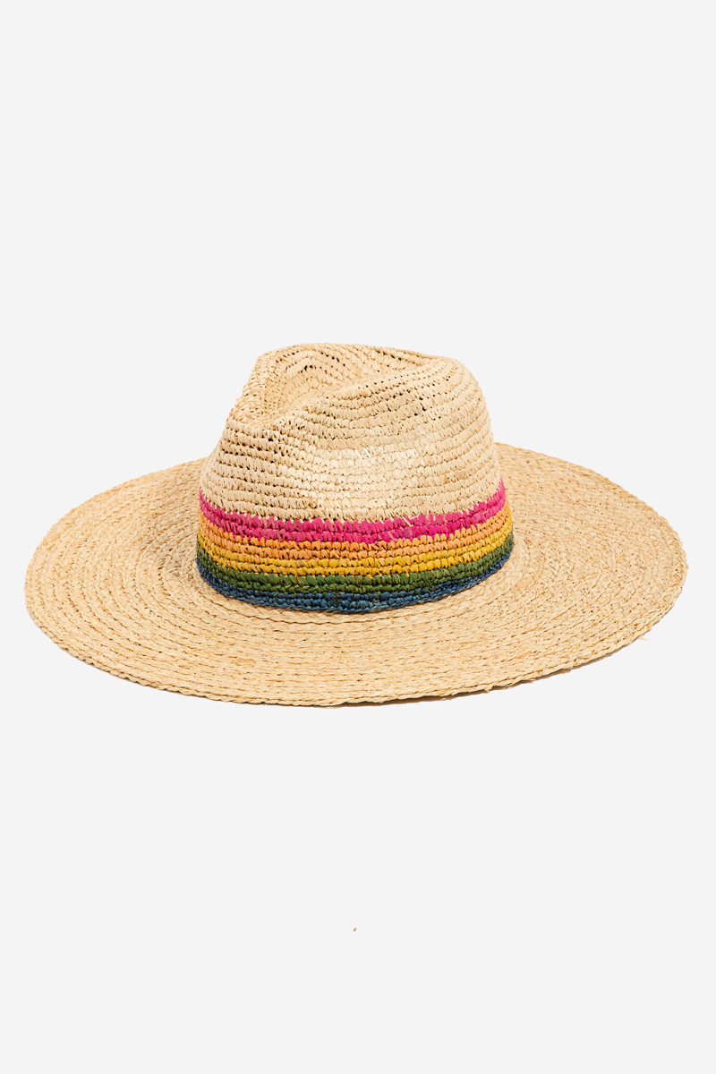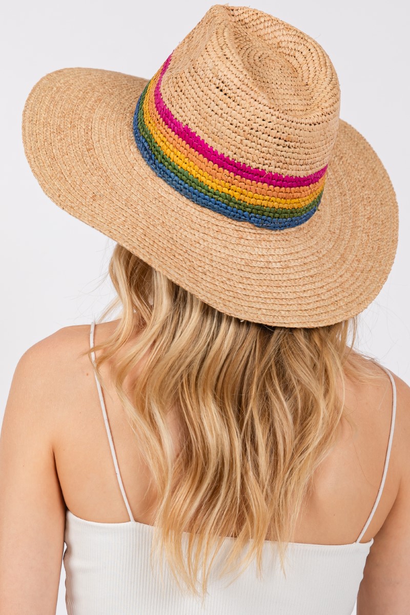 • This sun hat showcases a timeless rainbow stripe braided style. Indulge in the allure of exquisite craftsmanship as this sun hat effortlessly adds a touch of luxury to your attire.