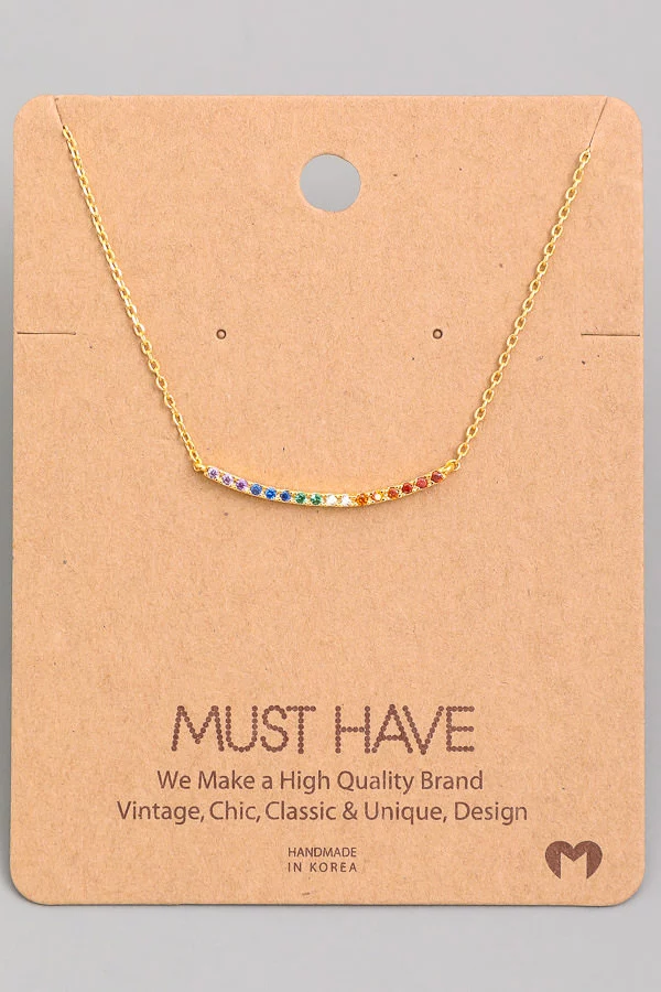 Gold Dipped Epoxy Rainbow Pendant Necklace