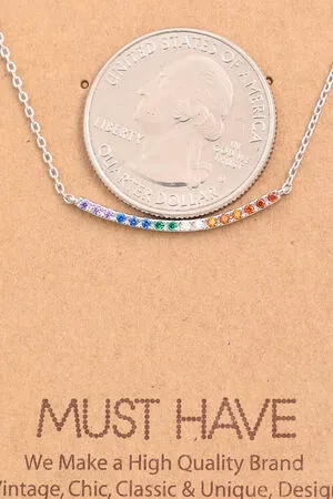 Gold Dipped Cz Rainbow Pave Cross Pendant Necklace