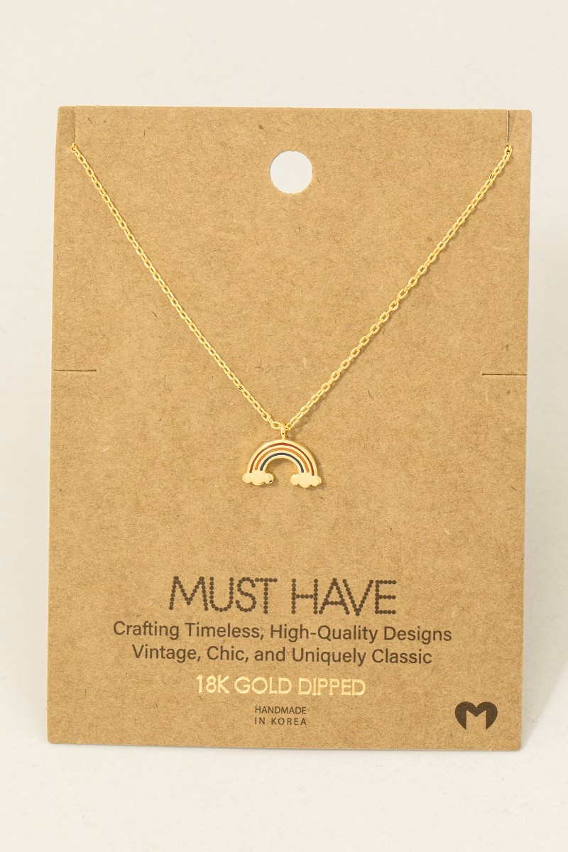 - This necklace showcases a timeless gold dipped epoxy rainbow pendant style. Celebrate individuality with this necklace that effortlessly expresses your unique sense of style.