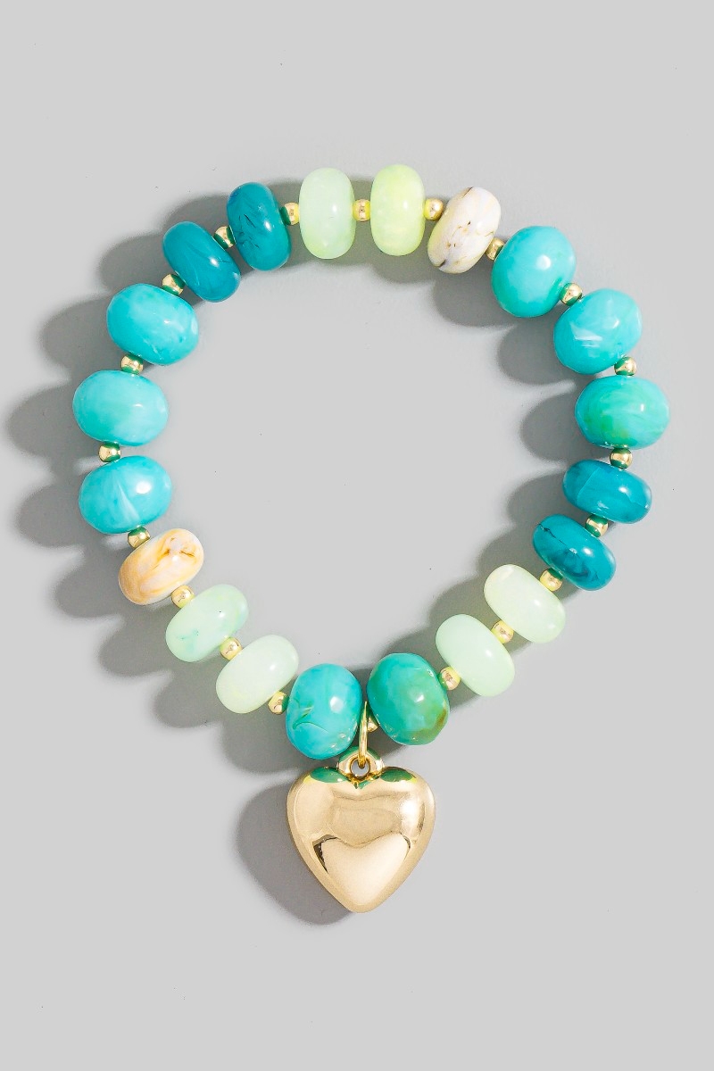 - This bracelet introduces a unique heart charm mixed marble resin beaded style. Indulge in the artistry of accessorizing with this unique piece.