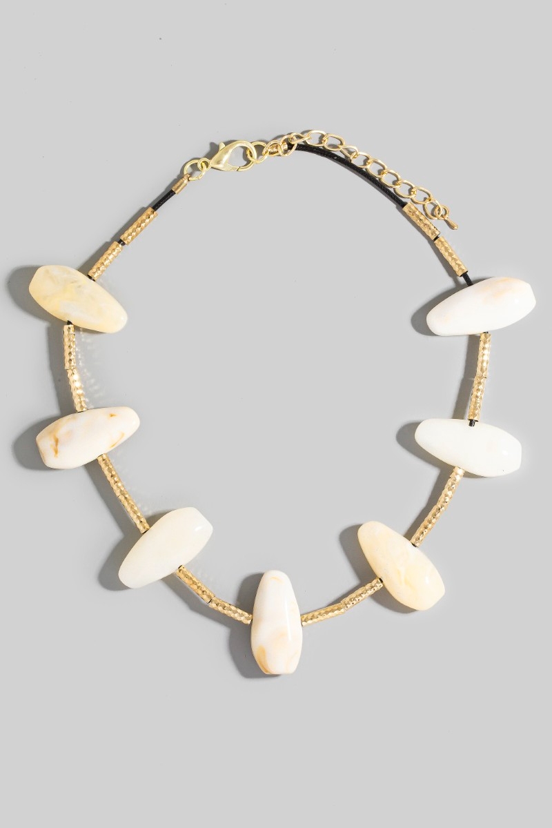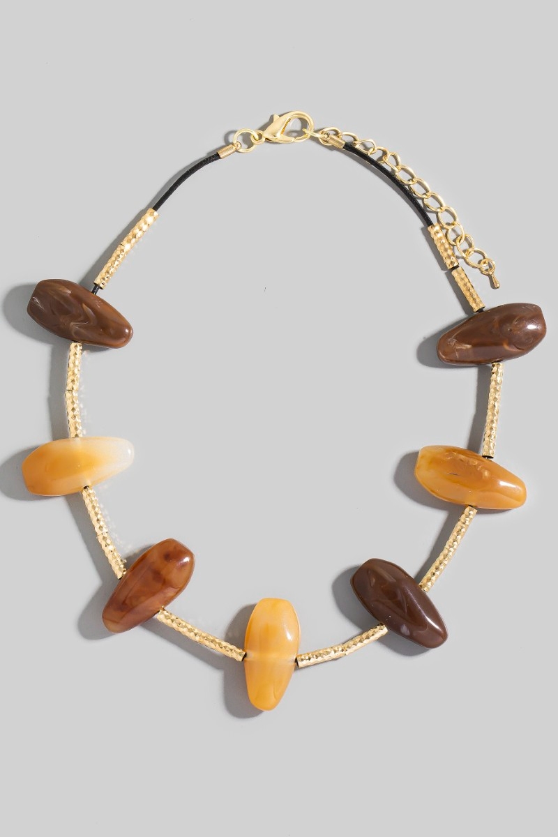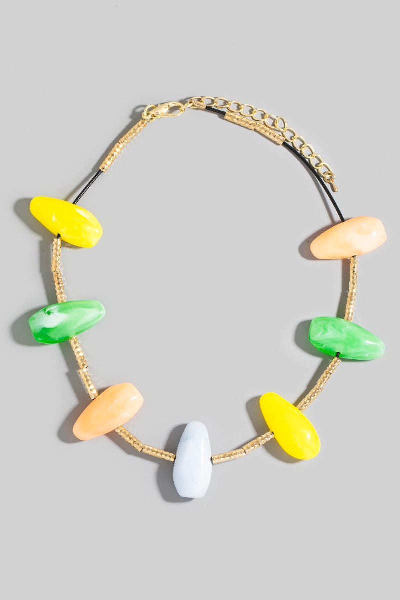 - This necklace showcases a timeless assorted resin stone charms style. Delight in the intricate details that make this necklace an essential element in expressing your fashion identity.