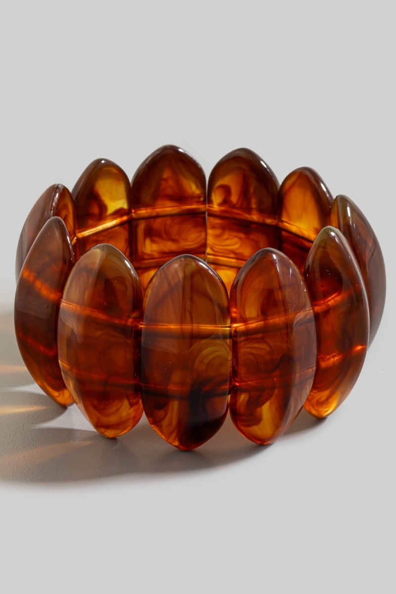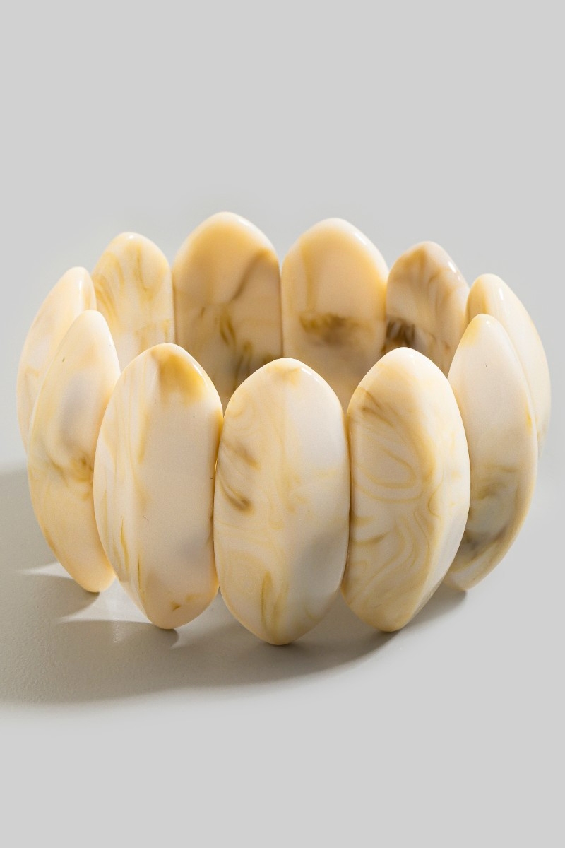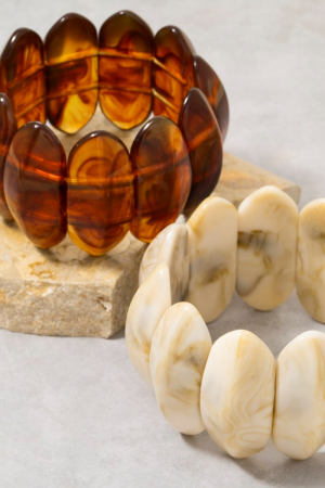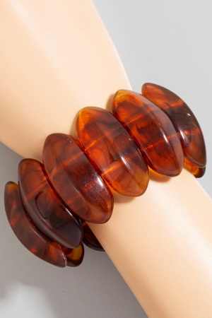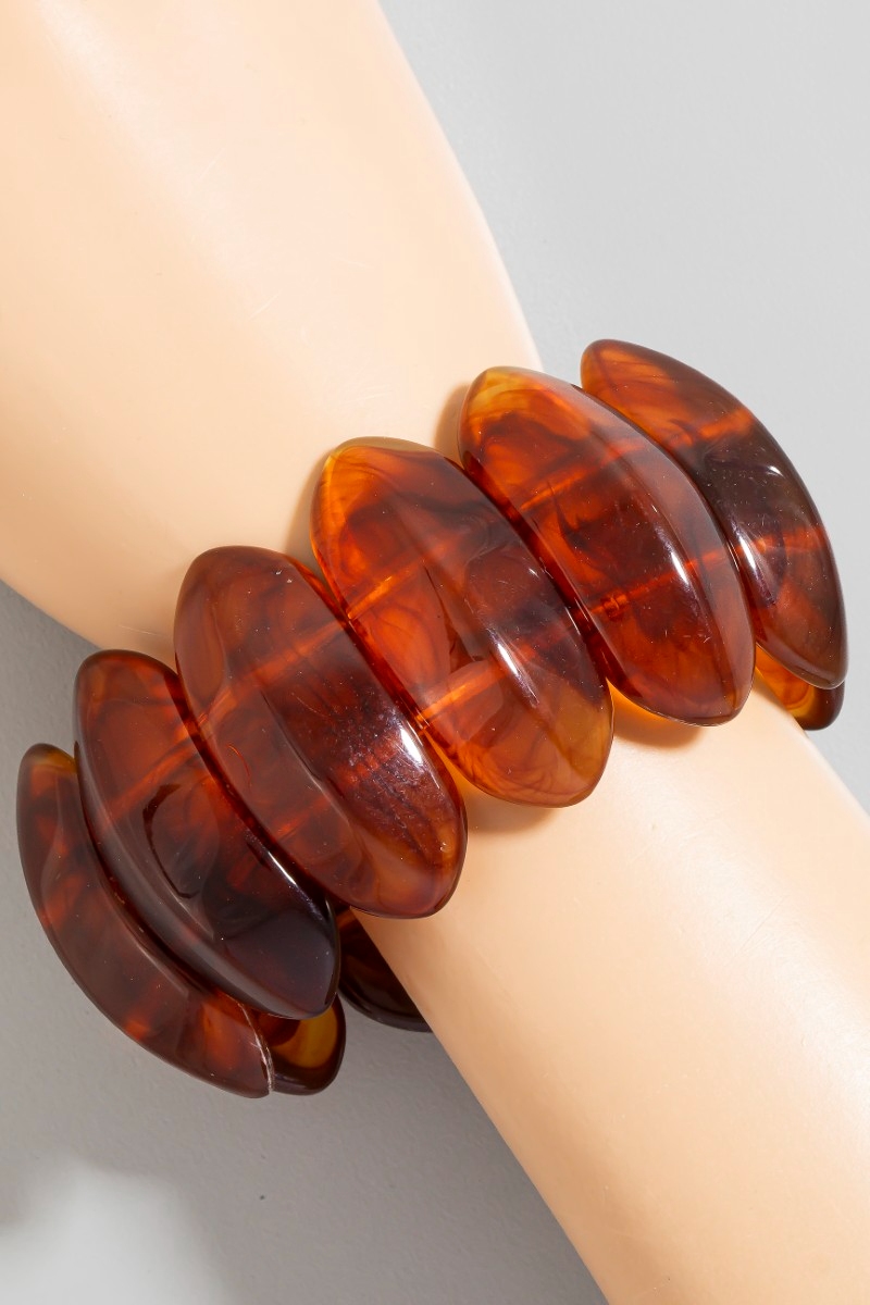 - This bracelet displays a fashionable large oval acetate beaded elastic style. Delight in the nuanced details that make this bracelet a testament to fine design and impeccable taste.