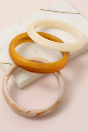 - This bangle bracelet displays a fashionable 3 piece marble resin set style. Immerse yourself in the details of design, as this bangle bracelet effortlessly becomes a conversation starter.