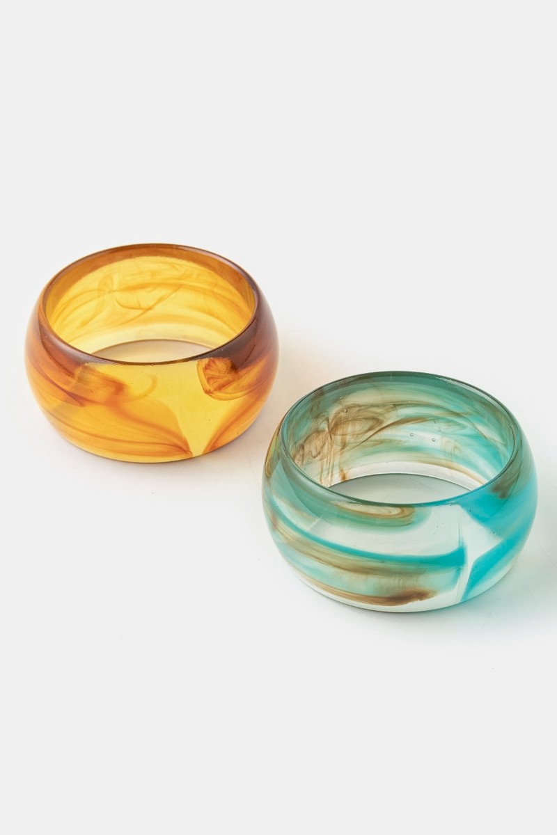 - This bangle bracelet displays a vibrant solid resin style. Experience refined sophistication with this understated yet stylish piece.
