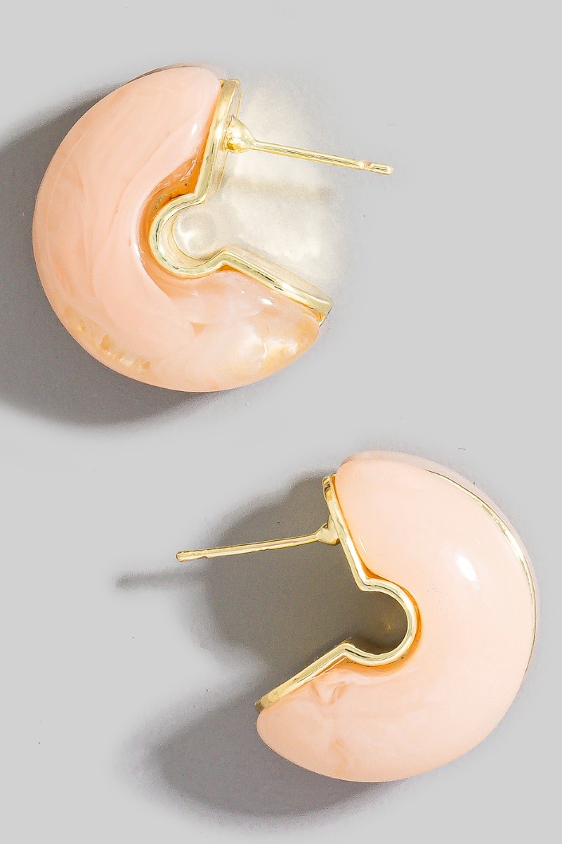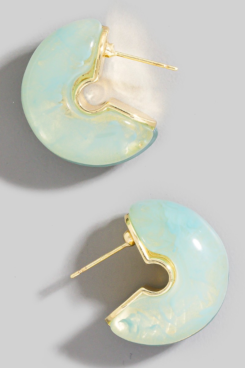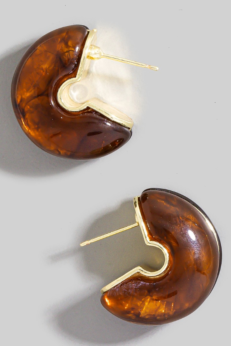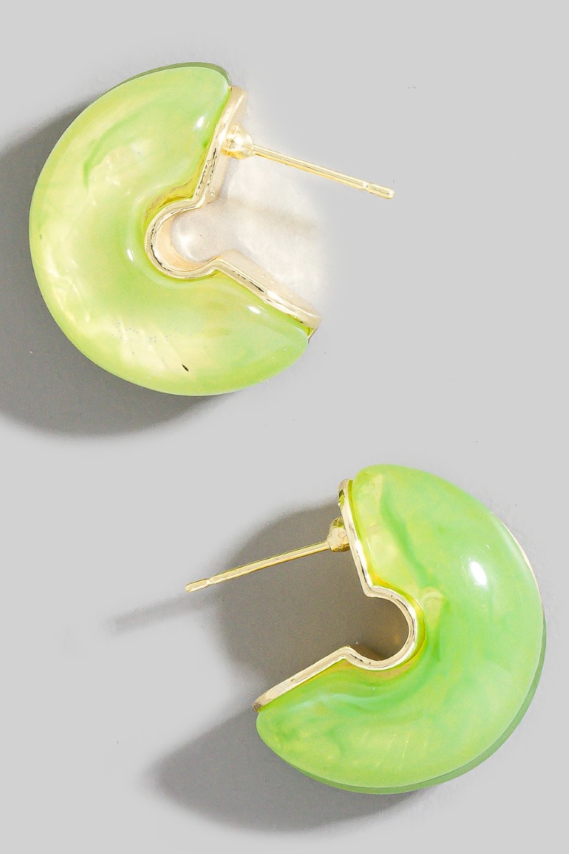 - This pair of post earrings displays a vibrant colorful resin c style. Explore a blend of classic charm and contemporary flair.