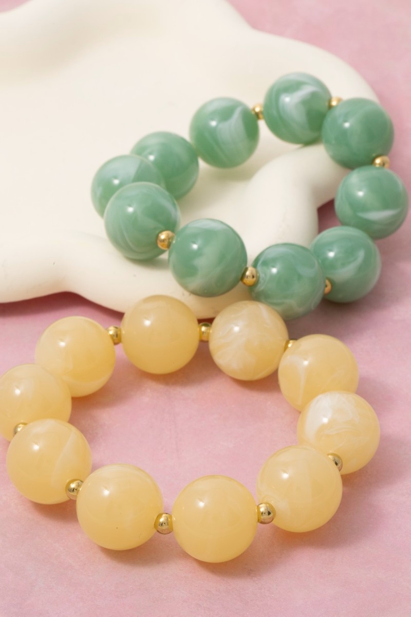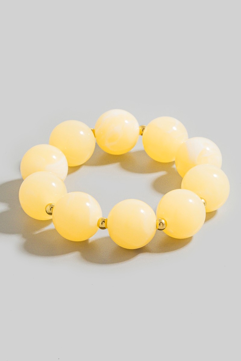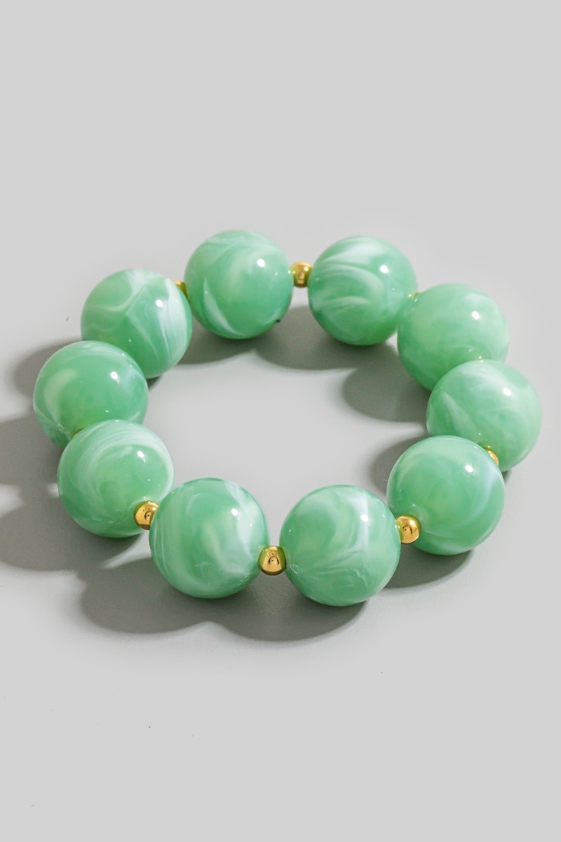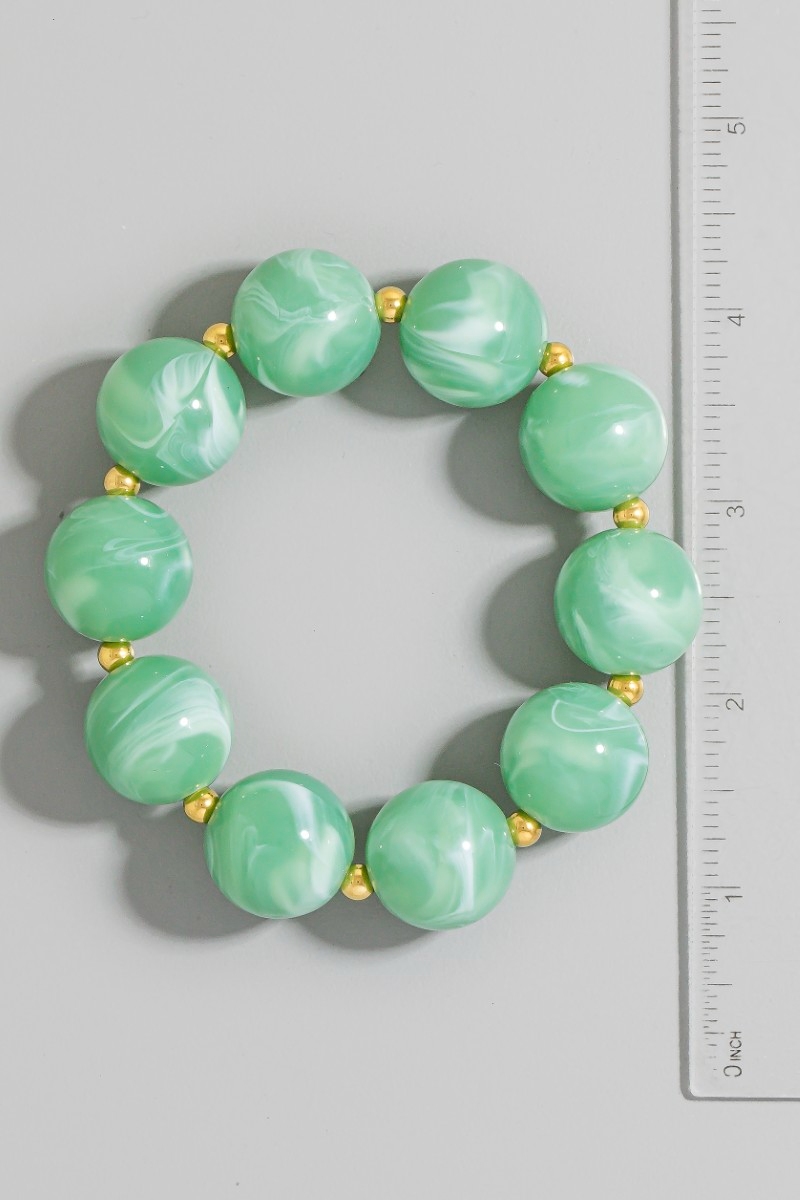- This bracelet features a fashionable large marble resin ball beads style. Celebrate individuality with this bracelet that effortlessly expresses your unique sense of style.