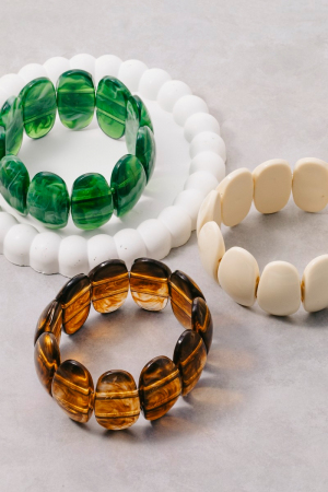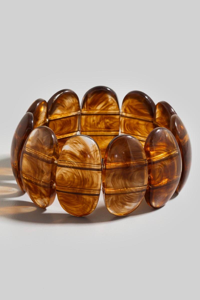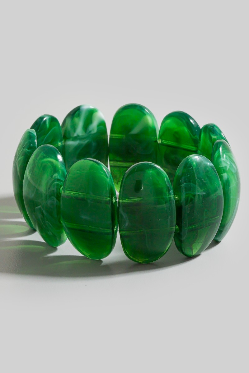 • This bracelet showcases a unique marble acrylic ovals elastic style. Explore a refined sense of style with this bracelet, seamlessly elevating the chic factor of your look.