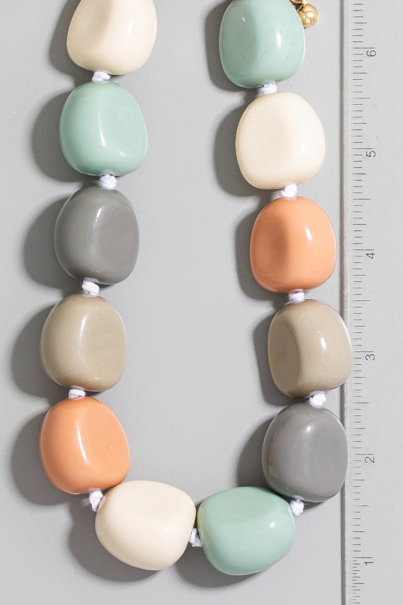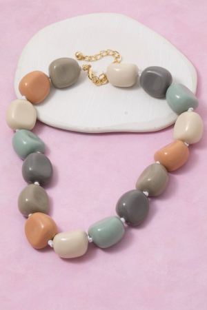 - This necklace introduces a unique multi color nugget resin statement style. Experience a burst of creativity in accessorizing as this piece effortlessly sets the tone for your unique style.