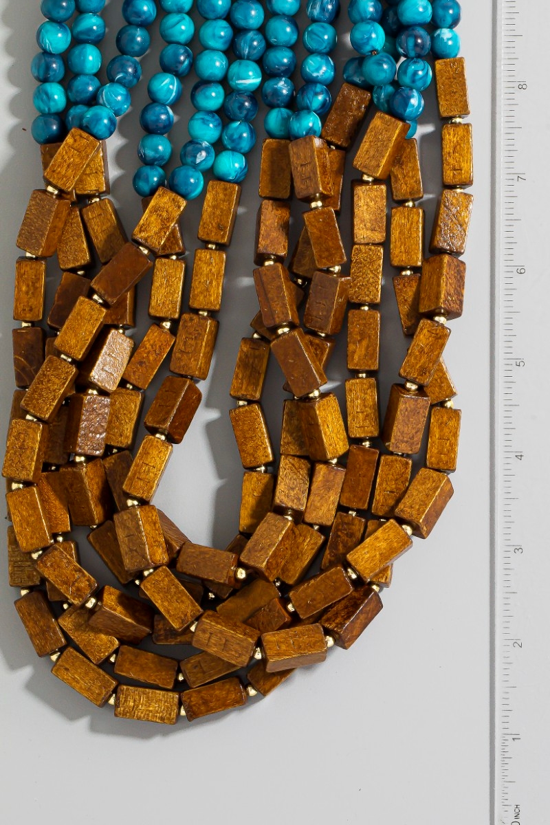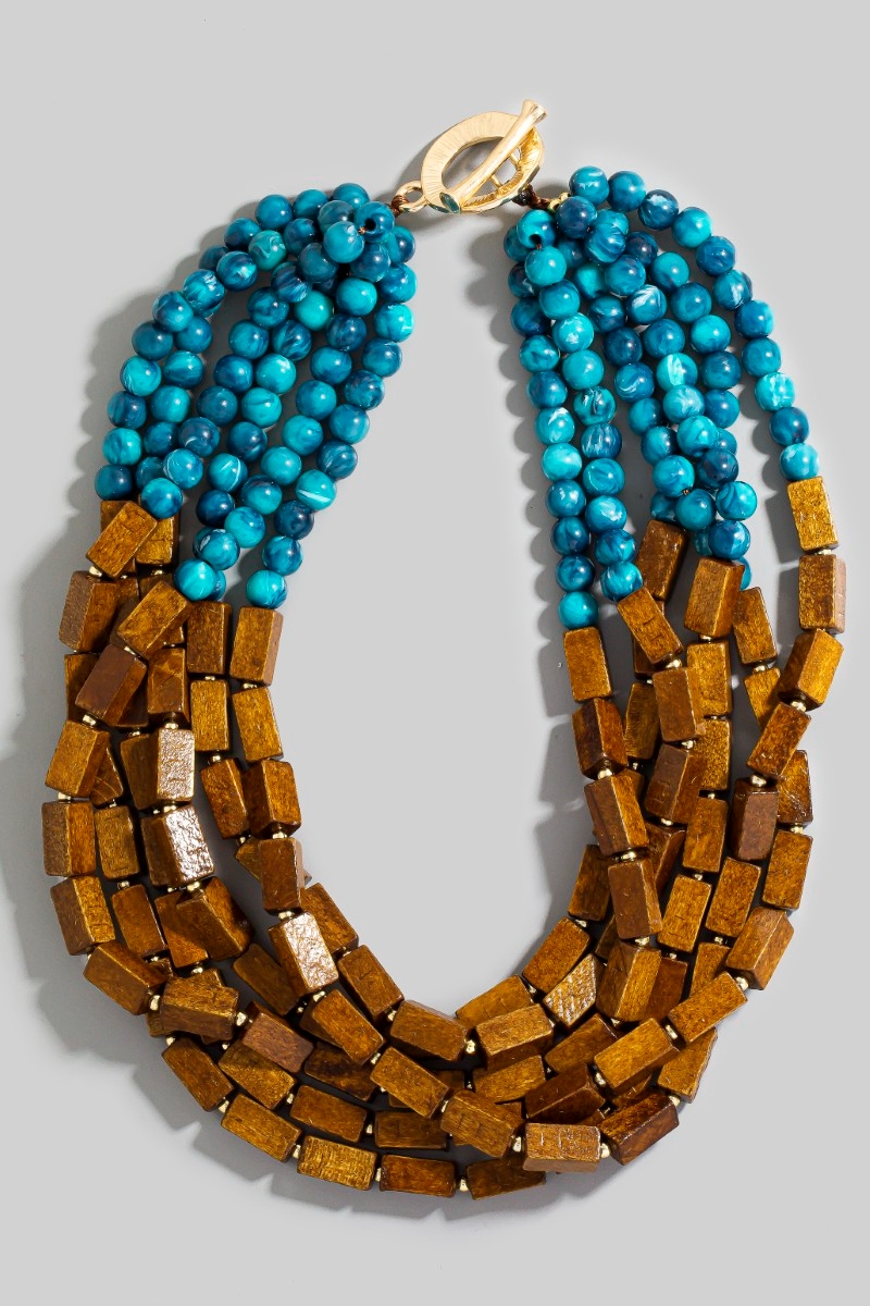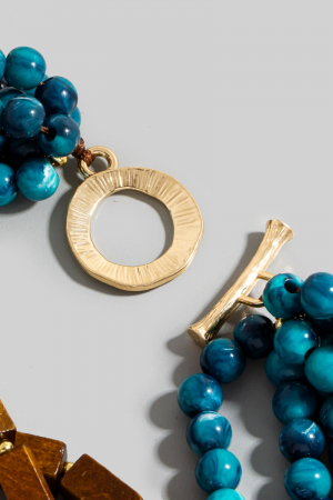 • This necklace displays a fashionable gold dipped marble resin and wooden layered beaded statement style. Explore a refined sense of style with this necklace, seamlessly elevating the chic factor of your look.