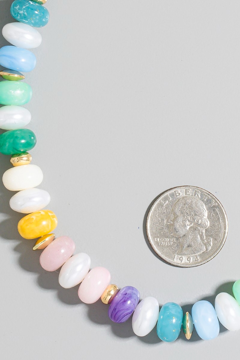 Mixed Faceted And Marble Resin Disc Beads Necklace