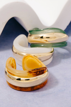 - This ring brings a luxurious resin and gold statement style. Explore a refined sense of style with this ring, seamlessly elevating the chic factor of your look.