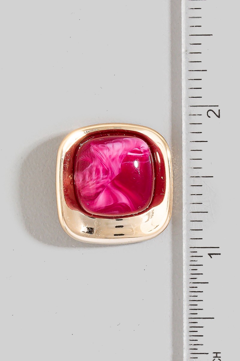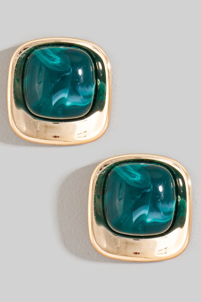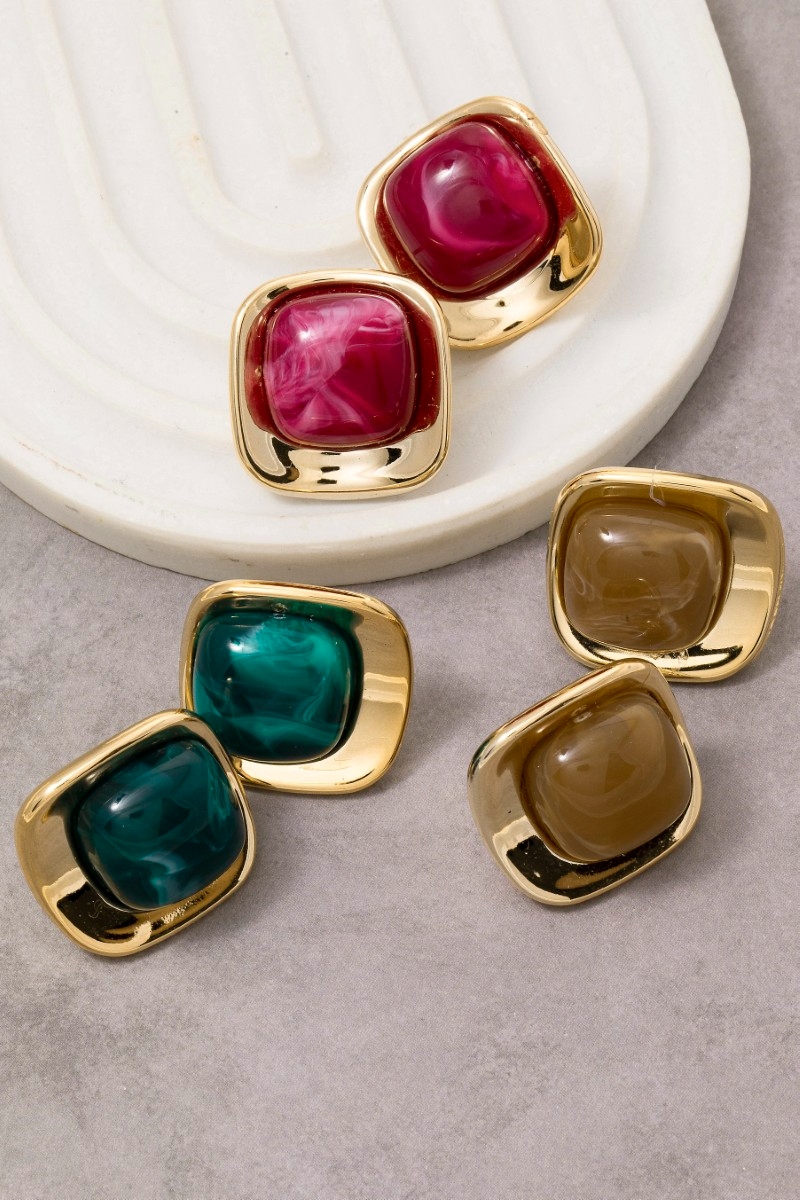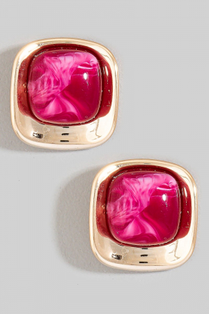 • This pair of stud earrings displays a vibrant square marble resin style. Experience refined sophistication with this understated yet stylish piece.