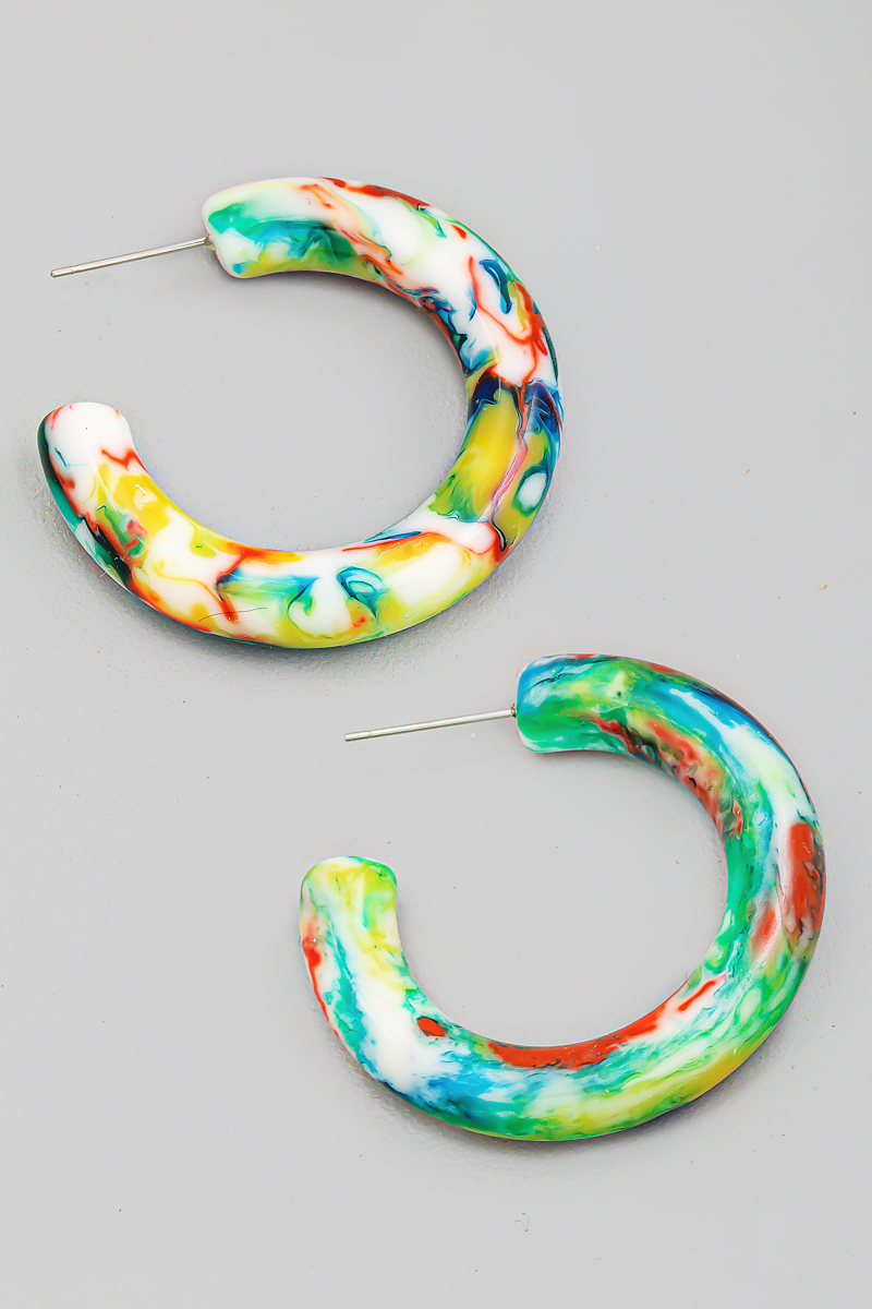 Curved Marble Resin Rectangle Shield Stud Earrings