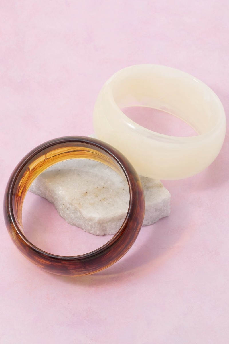 - This bangle bracelet showcases a timeless thick marble resin style. Indulge in the artistry of accessorizing with this unique piece.