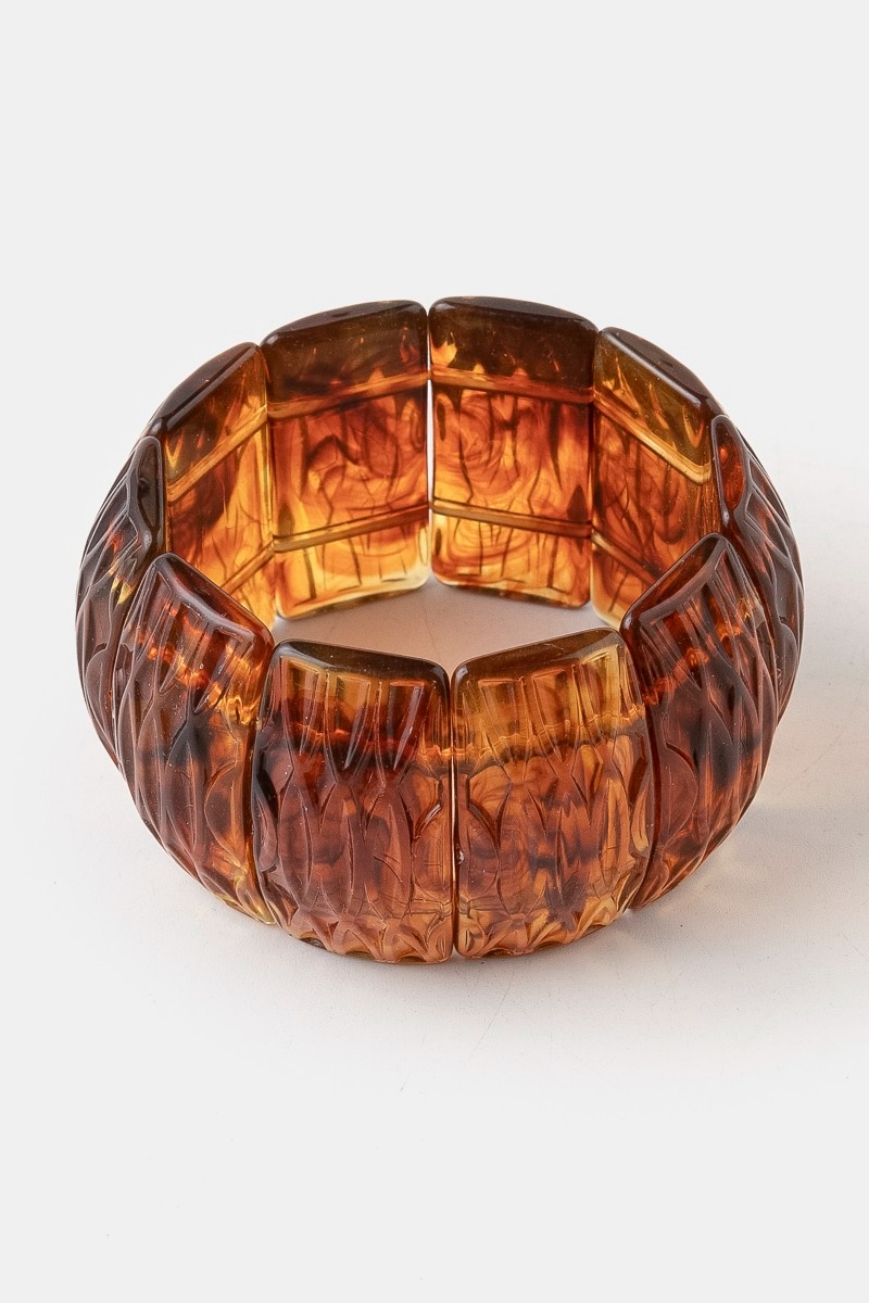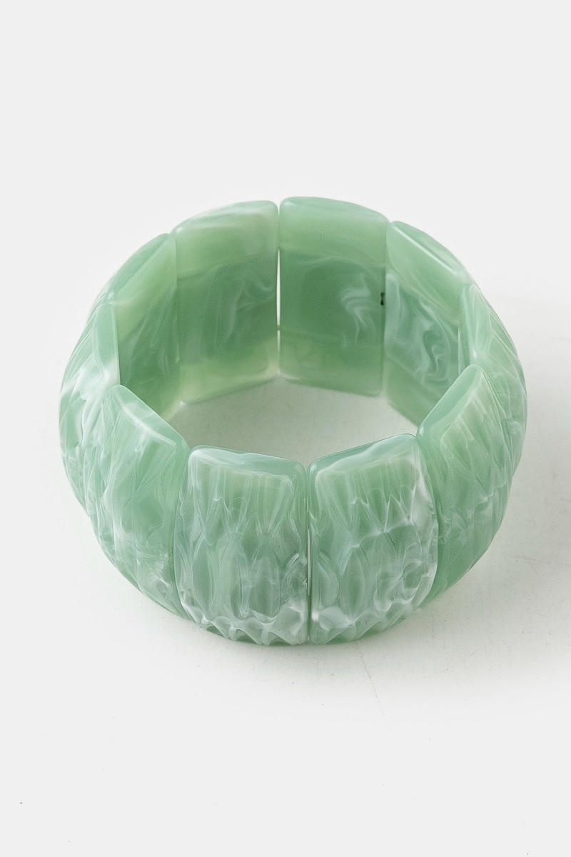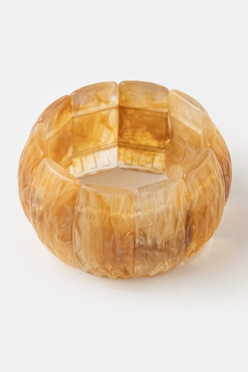 • This stretch bracelet introduces a stunning wide resin block style. Unveil a new dimension of sophistication as this stretch bracelet effortlessly enhances the elegance of your ensemble.