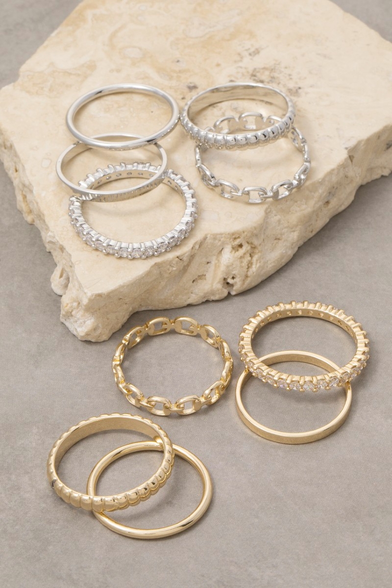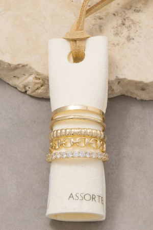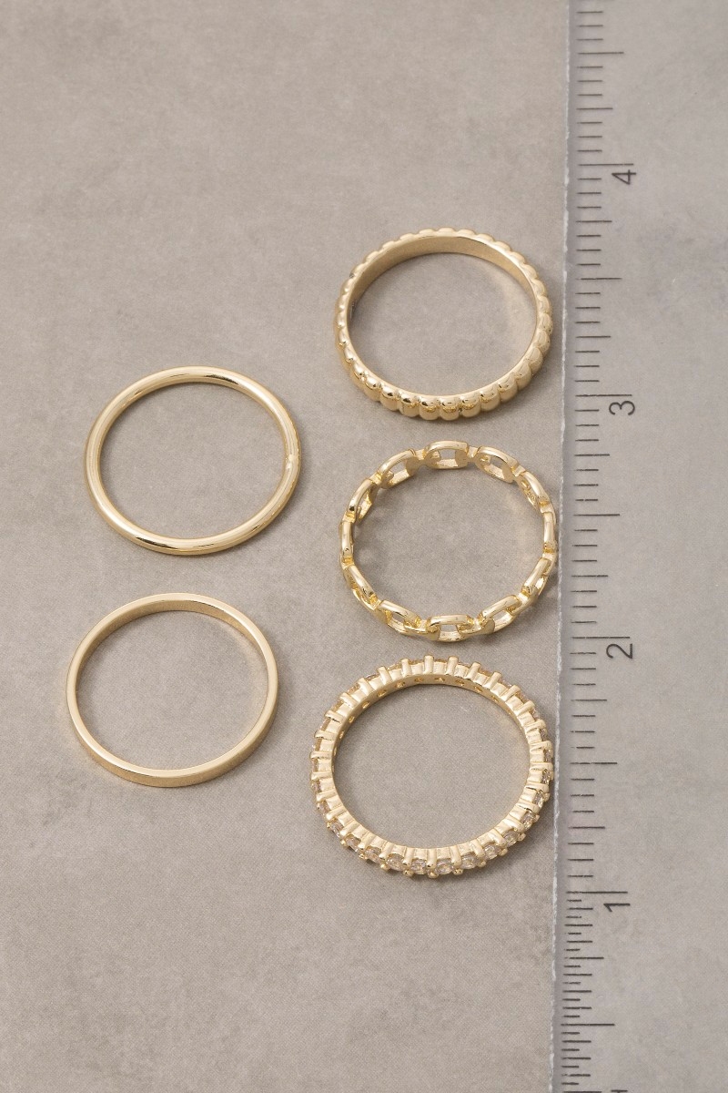 - This ring set introduces a stunning 5pc assorted band rings set style. Indulge in the artistry of accessorizing with this unique piece.