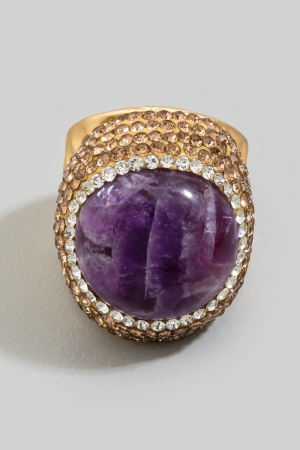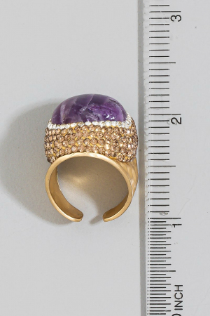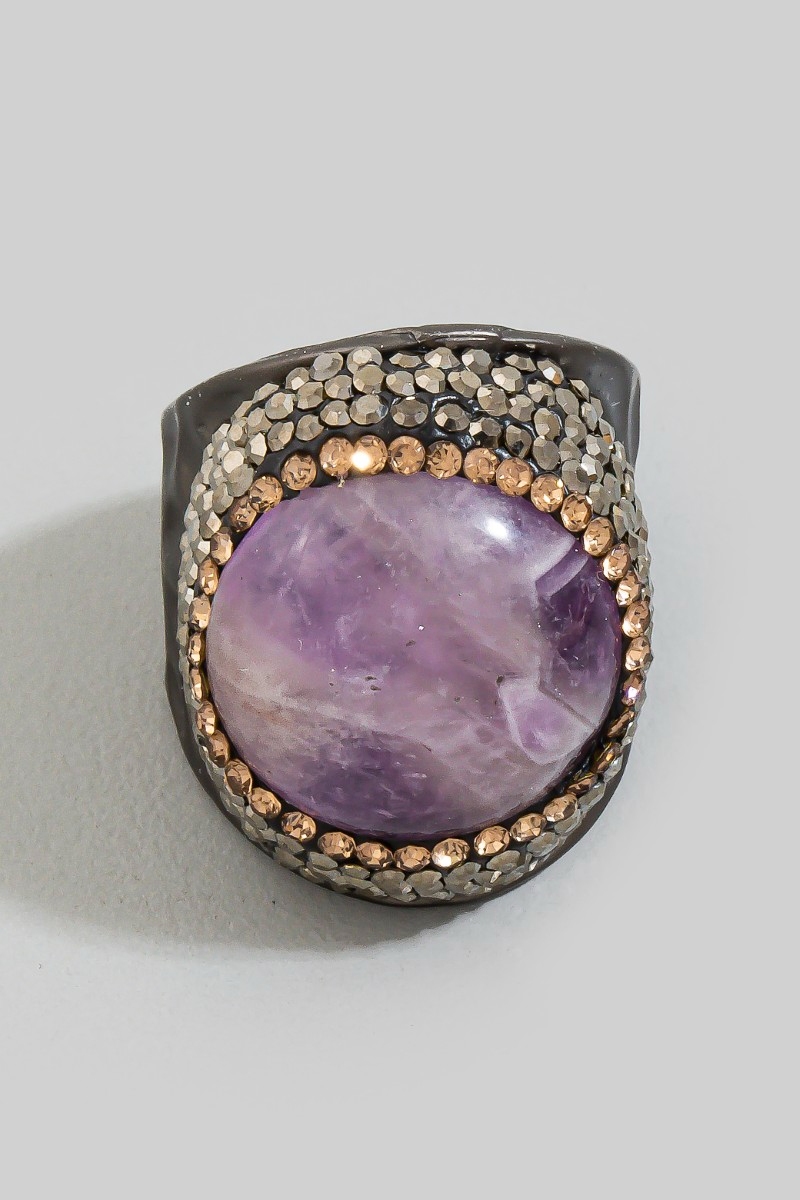 - This ring introduces a stunning amethyst stone pave statement style. Immerse yourself in the details of design, as this ring effortlessly becomes a conversation starter.