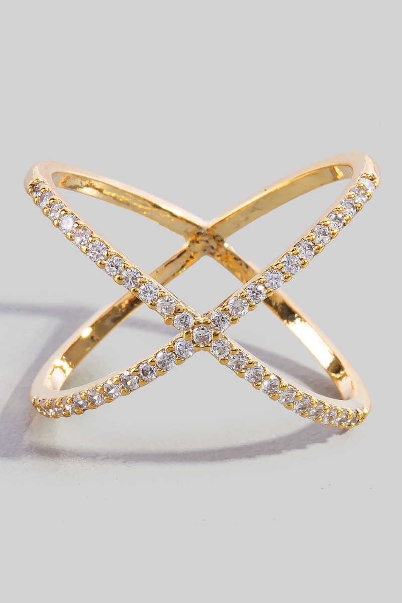 - This ring displays a fashionable delicate rhinestone x style. Elevate your ensemble with this chic, timeless ring.