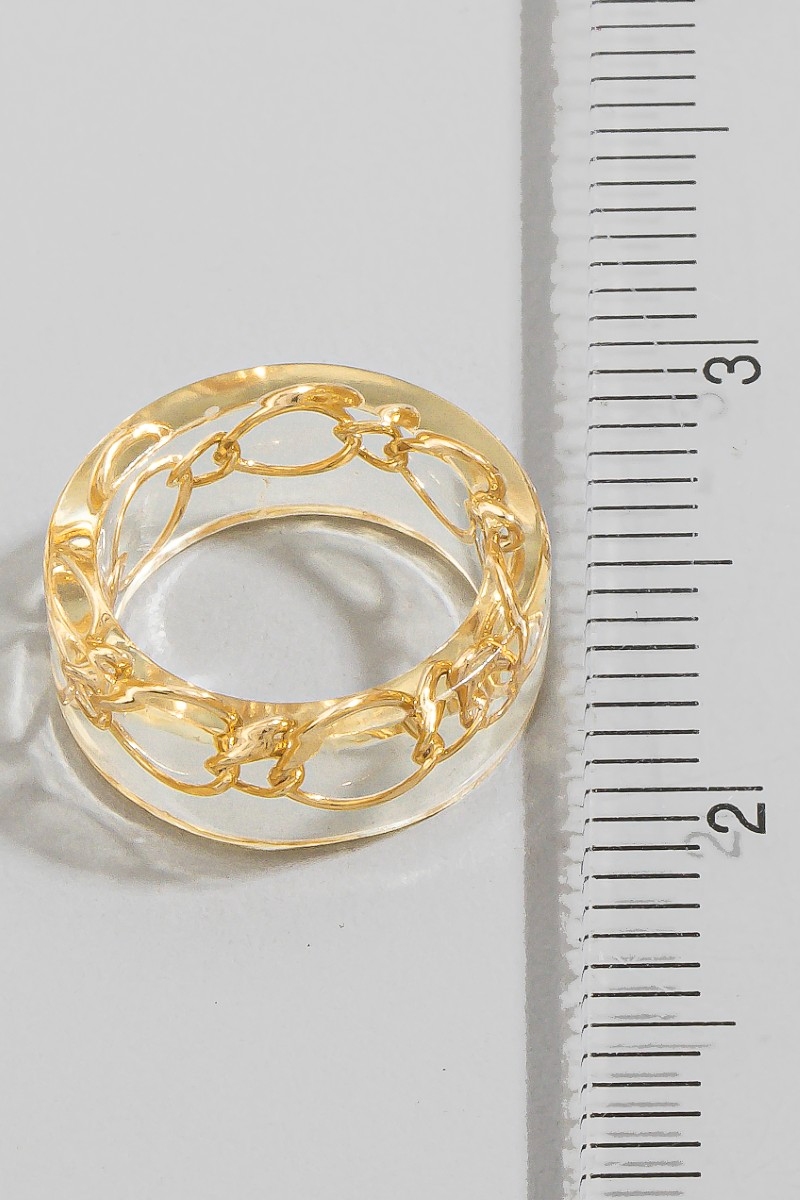 - This ring introduces a stunning gold chain inlay clear resin style. Delight in the nuanced details that make this ring a testament to fine design and impeccable taste.
