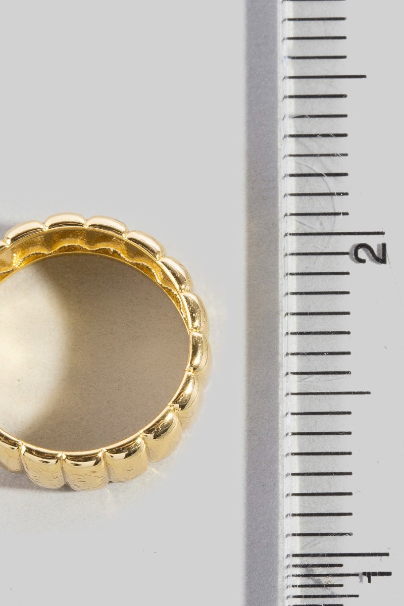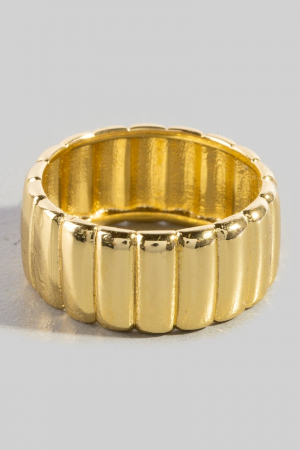 - This ring features a fashionable metallic wide ribbed fashion style. Savor the allure of detailed craftsmanship in this exquisite ring.