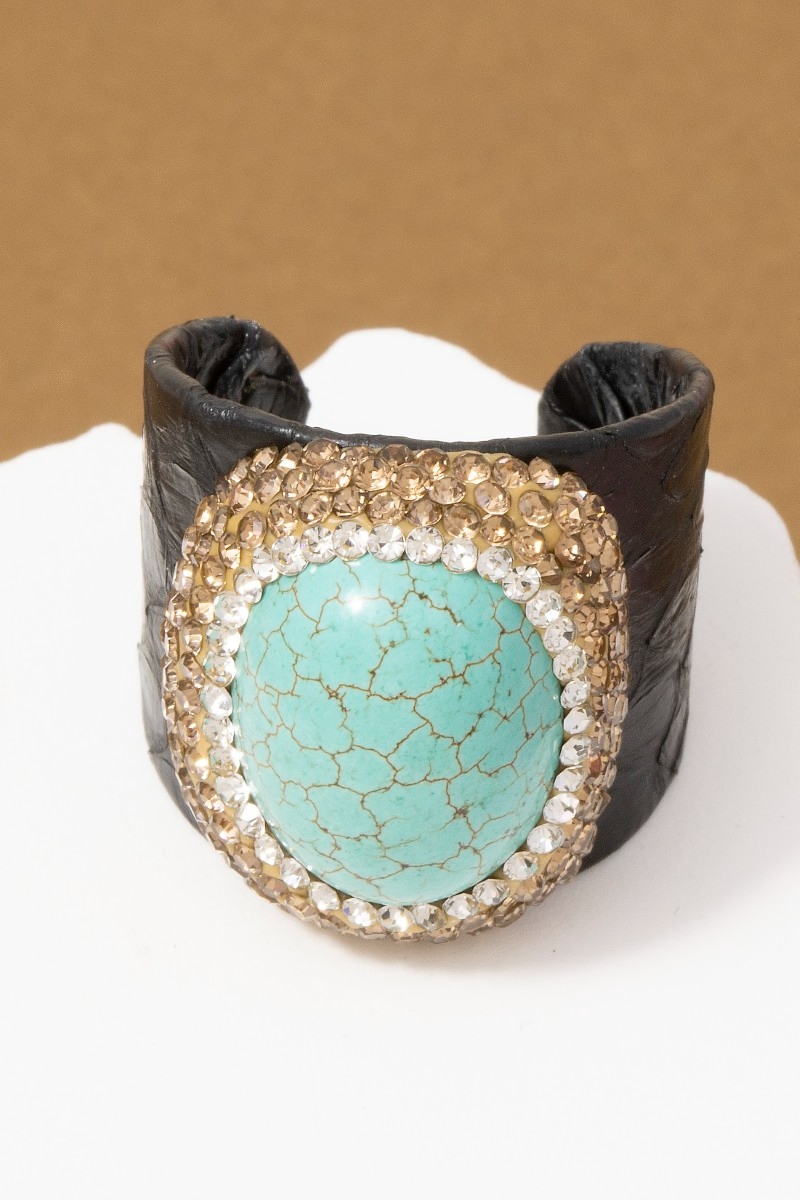 • This ring brings a stunning oval turquoise stone leather band statement style. Delight in the intricate details that make this ring an essential element in expressing your fashion identity.