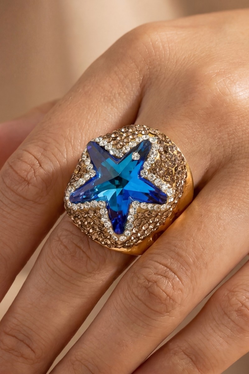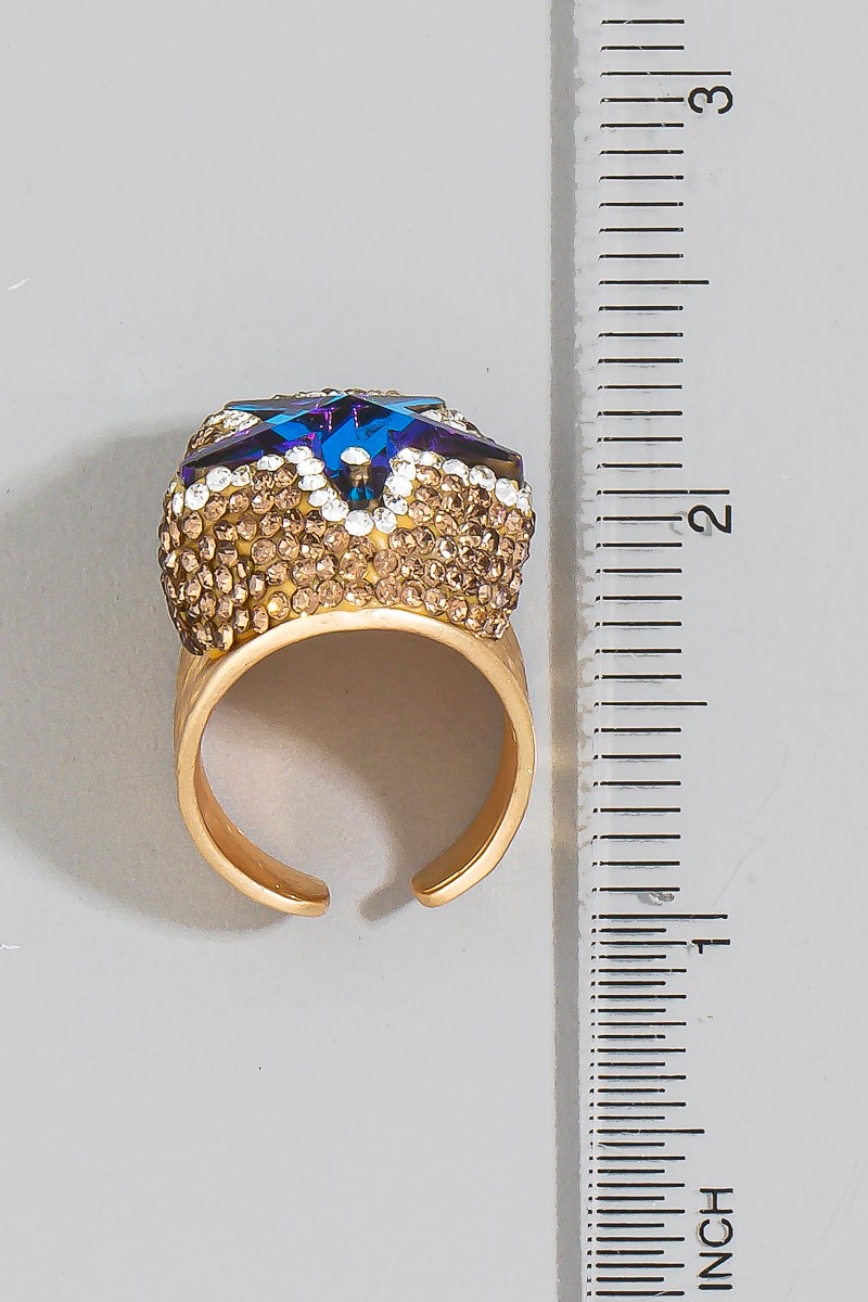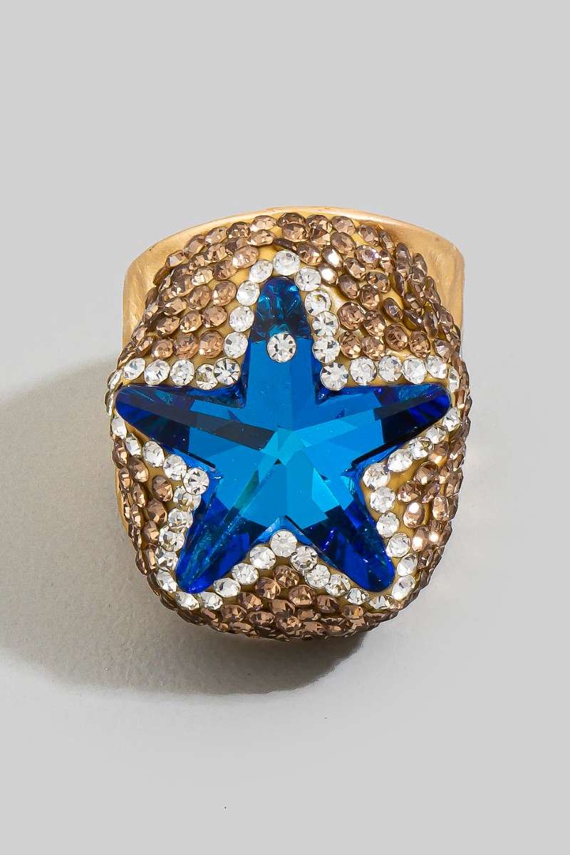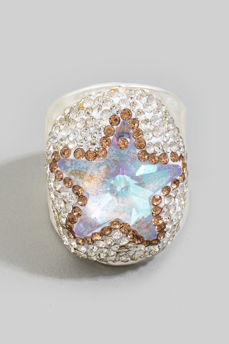 - This ring displays a vibrant pave crystal star statement style. Embark on a journey of sartorial refinement as this ring effortlessly complements your fashion sense.
