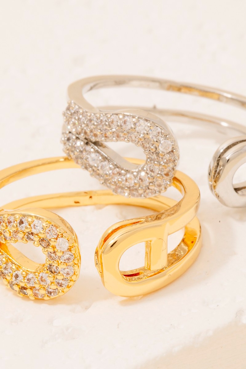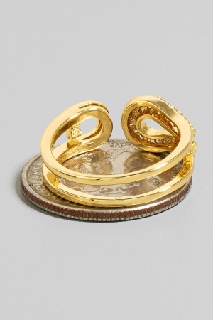 • This ring showcases a timeless pave and solid layered loop open band style. Witness the perfect fusion of style and functionality as this ring effortlessly complements your lifestyle.