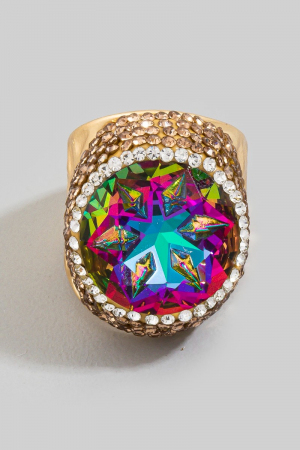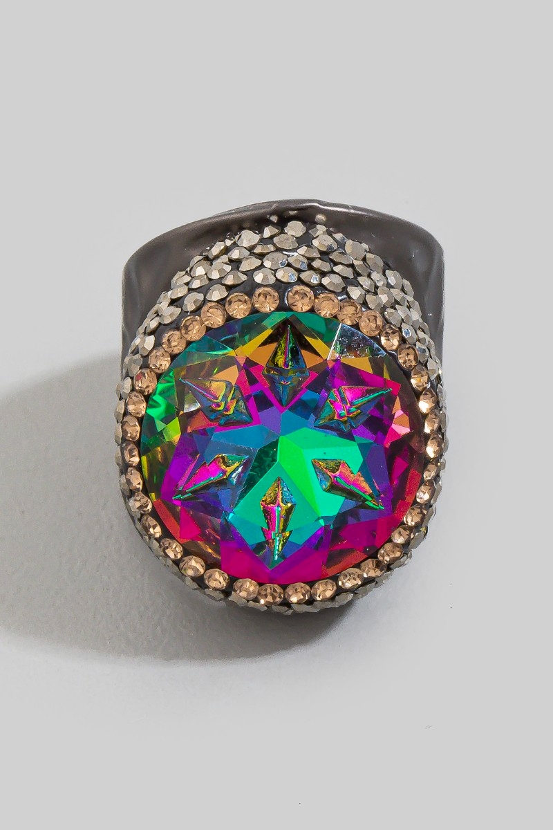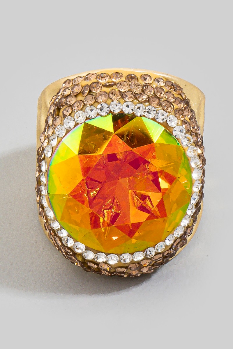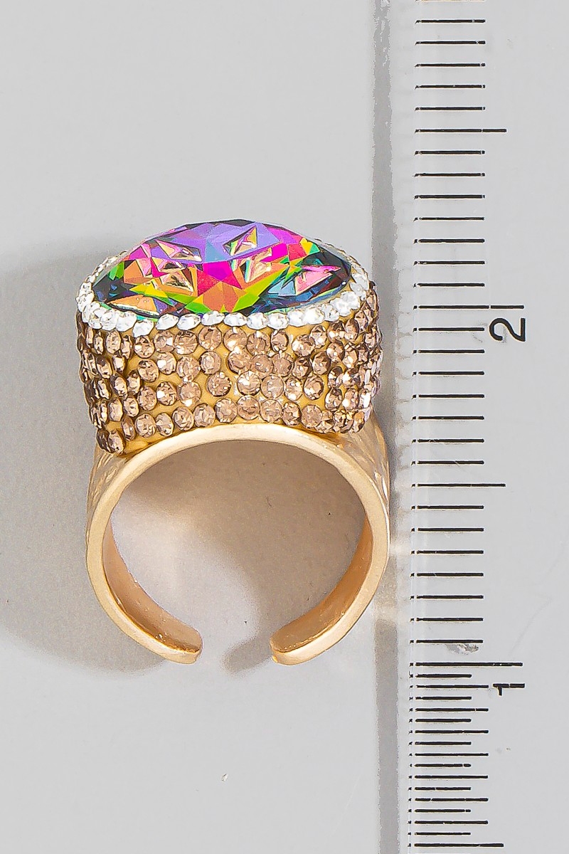 Colorful Opal Crystal Stone Pave Statement Ring
