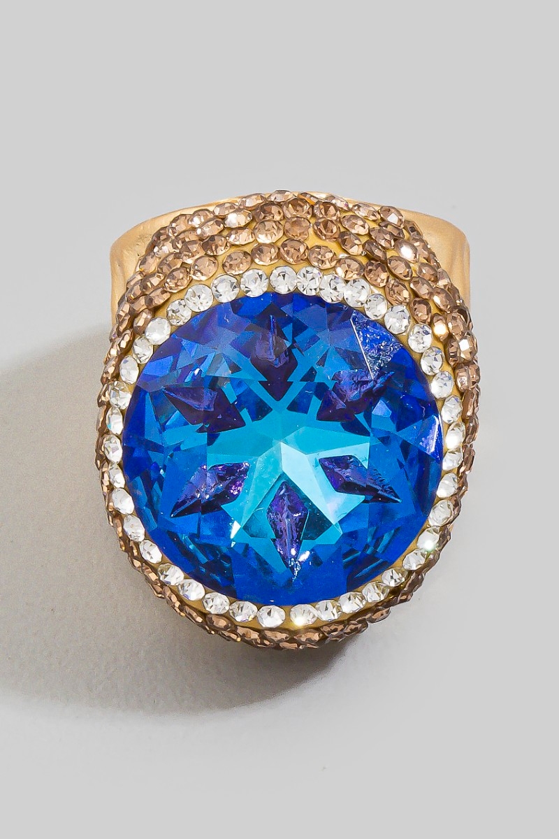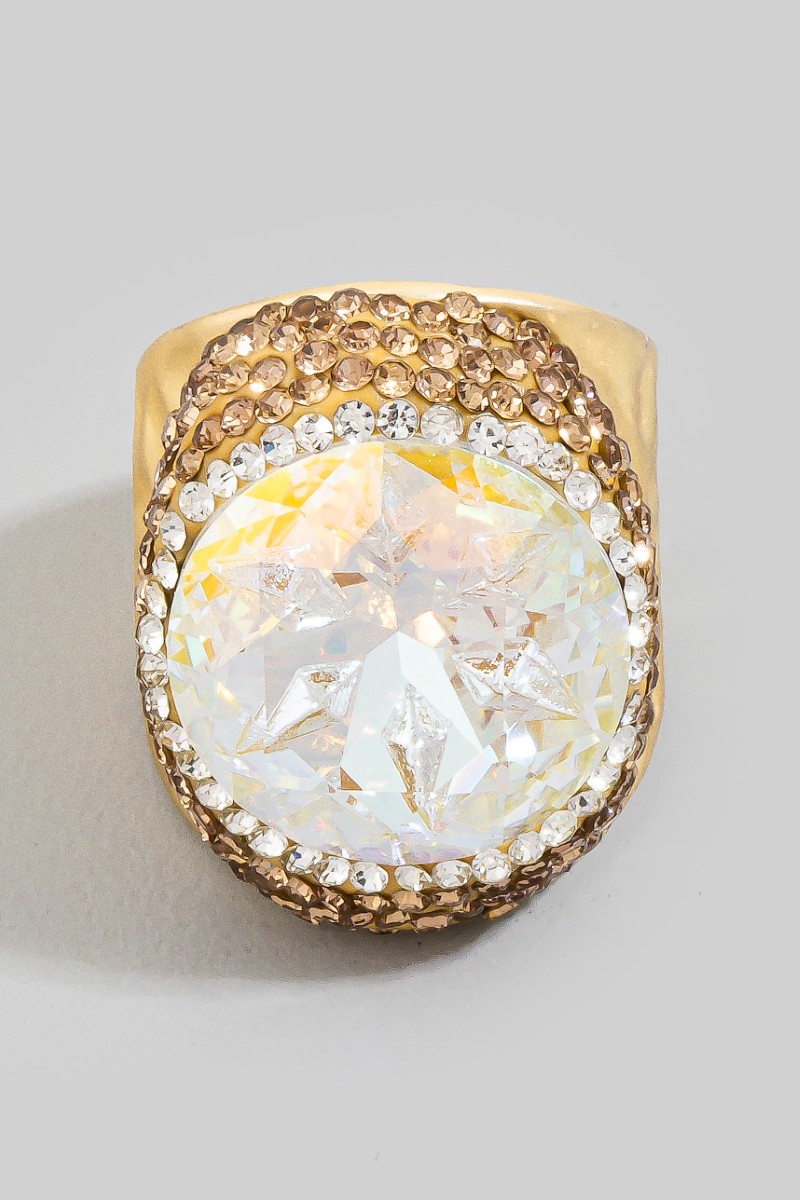 Oval Glass Stone Pave Statement Ring