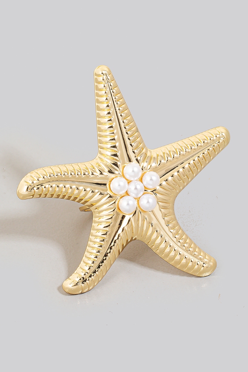 - This ring features a fashionable pearl studded starfish open band style. Experience the joy of accessorizing with this piece that effortlessly combines versatility and charm.