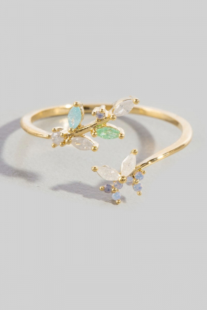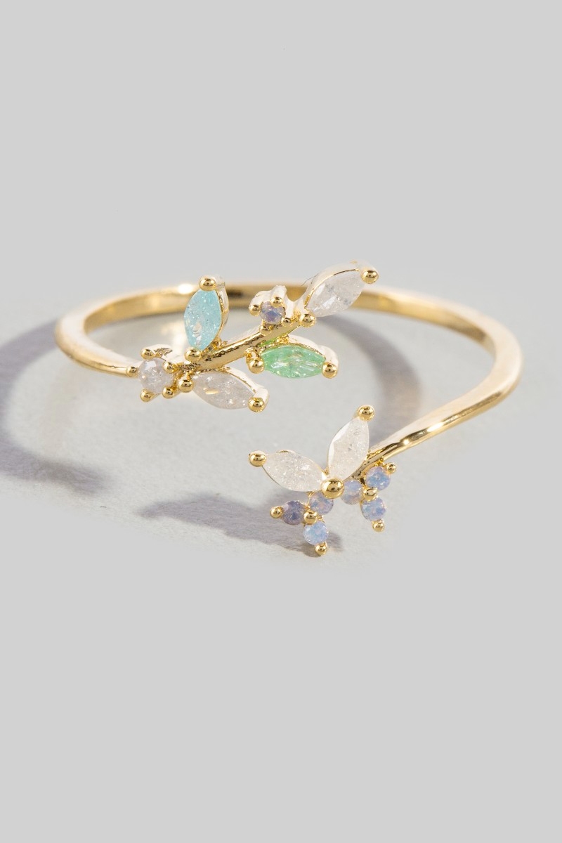 - This ring showcases a unique rhinestone leaf twist style. Unveil modern elegance with this subtly intricate ring.