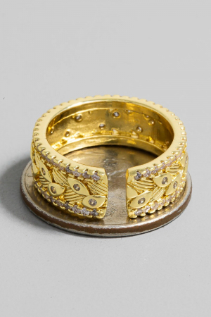 - This ring brings a unique rhinestone trim evil eye band style. Celebrate the art of accessorizing with this piece that effortlessly encapsulates modern trends.