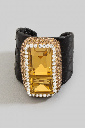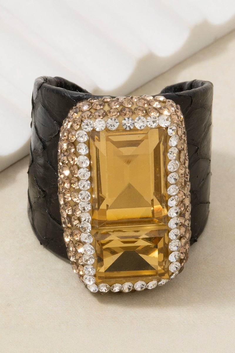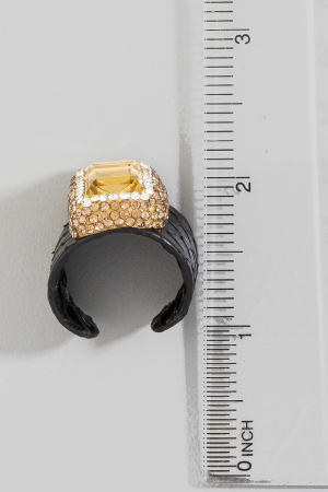 - This ring showcases a unique two crystal stone with leather band pave statement style. Experience the joy of accessorizing with this piece that effortlessly combines versatility and charm.
