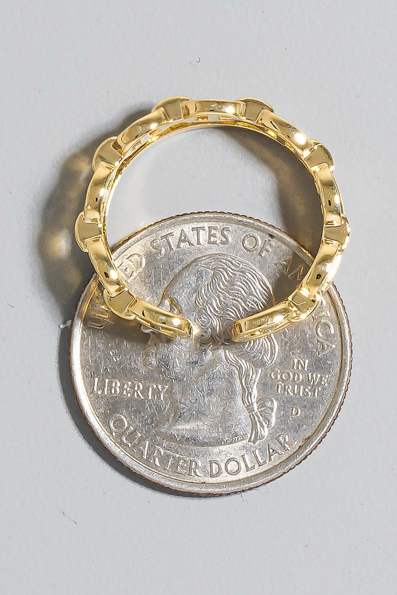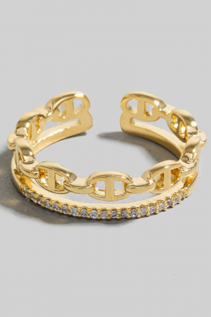 • This ring adds a modern anchor chain and pave layered open band style. Redefine your look effortlessly with this standout, on-trend piece.